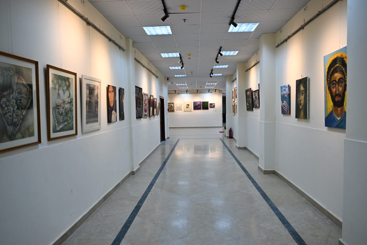 بدأت الفعاليات بتفقد الحضور للمعرض الفني المقام بقاعة التراث، الذي تضمن مجموعة من الأعمال الإبداعية والتراثية التي شارك في تقديمها 48 فنانا وأكاديميا.