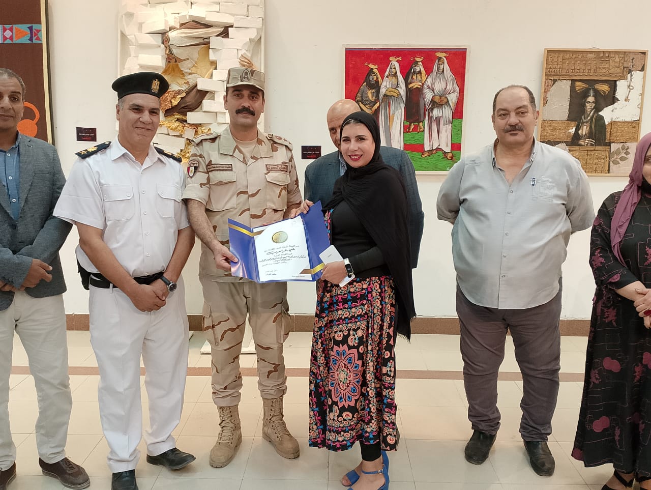 فيما شاركت د. إيناس ضاحي أحمد محمد، أستاذ التصوير، بثلاثة أعمال تصويرية بوسائط مختلطة، تناولت رمزية المرأة ومراحل حياتها كقيمة إنسانية وحياتية، مستخدمة اللون الذهبي كرمز للنضج والخبرة.