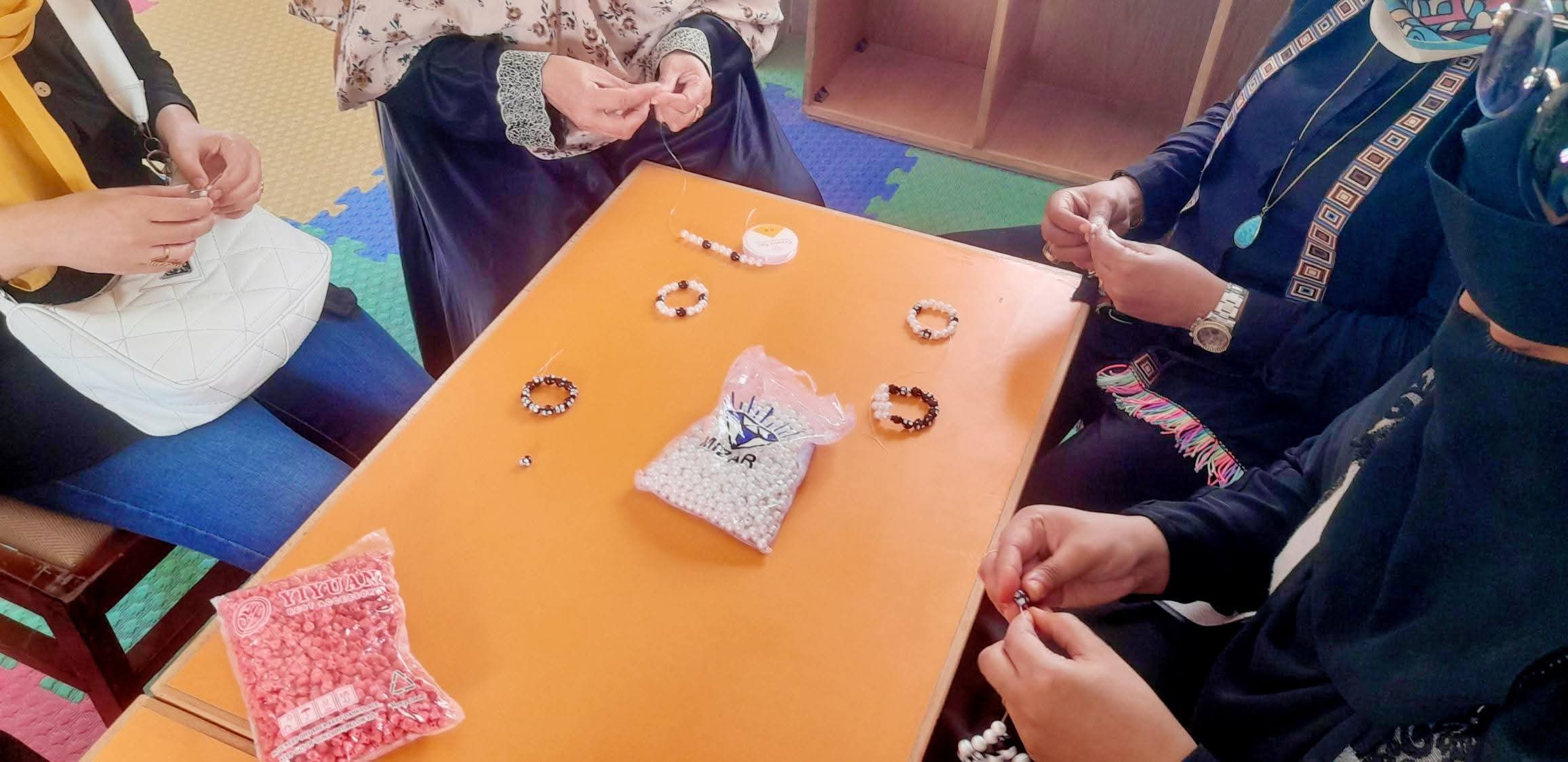 وتواصلت الفعاليات مع ورشة تصميم مشغولات يدوية بالخرز الملون بطريقة مبسطة قدمتها المدربة هدير حسن.