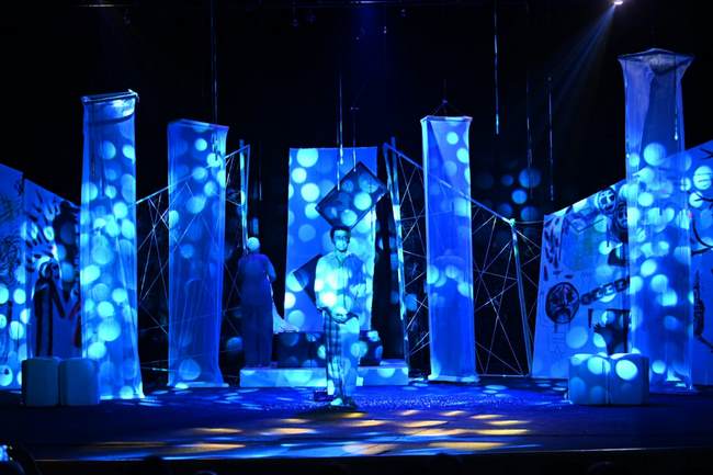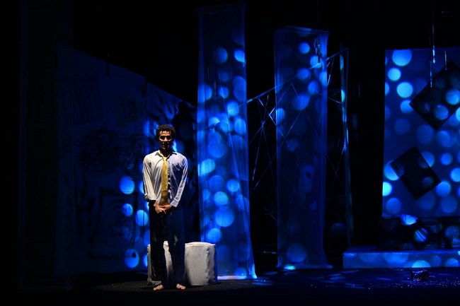 وأوضح أن الزمان والمكان في العرض يتمثلان في عقل شخصية "يحيى"، وهو ما انعكس على تصميم الديكور الذي جرى تقسيمه إلى أربعة أقسام تجسد الفصوص الدماغية الأربعة، مبينا أن كل مشهد من مشاهد العمل ارتبط بالجزء المسئول في الدماغ عن الرؤية أو السمع أو غيرهما، ليقدم الطرح بشكل رمزي عبر التنقلات، مع أداء تمثيلي واقعي يمنح الممثل حرية التلوّن والانتقال من حالة إلى أخرى.