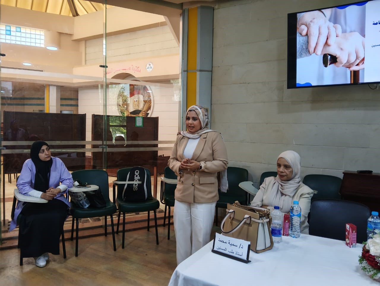 أعقب ذلك لقاءات توعوية قدمها الفريق الطبي من مستشفى الشهيد أحمد شوقي لطب المسنين بجامعة عين شمس، تناولت محاور مهمة حول التغذية السليمة، تعزيز الصحة النفسية، وأهمية الفحوصات الدورية.