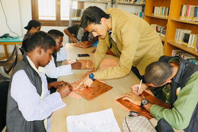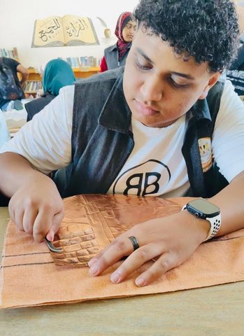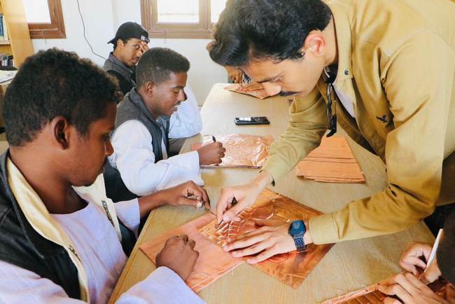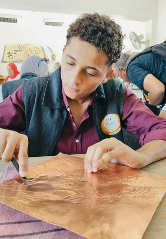 وأضاف أن هذا الفن لا يقتصر على النحاس فقط، بل يمكن تنفيذه باستخدام الألومنيوم ورقائق المعادن المختلفة، وحتى الخامات البسيطة مثل علب الصفيح، ورغم تراجع انتشاره أمام الأدوات الحديثة، فإن الشباب المشاركين أبدعوا في إنتاج قطع فنية يدوية نقشوا عليها عبارات مثل "صنع في الوادي الجديد"، و"صنع في الشلاتين"، ما يعكس ارتباطهم ببيئاتهم المحلية.