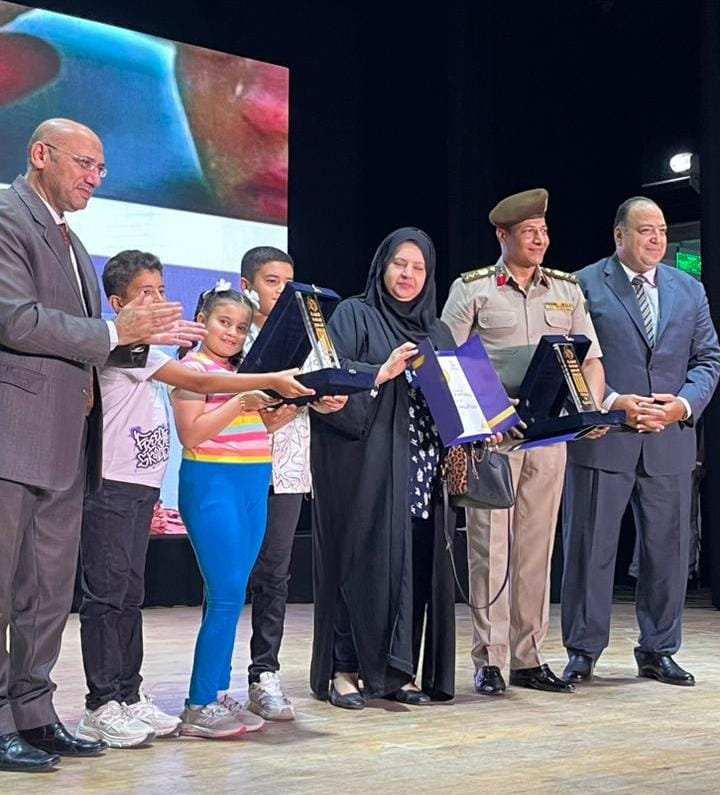 واختُتم الحفل بتكريم والدة الشهيد أحمد الخولي الملقب بـ"أسد سيناء"، والعقيد محمد عبد العزيز، تقديرا لتضحياتهم وبطولاتهم في الدفاع عن الوطن.