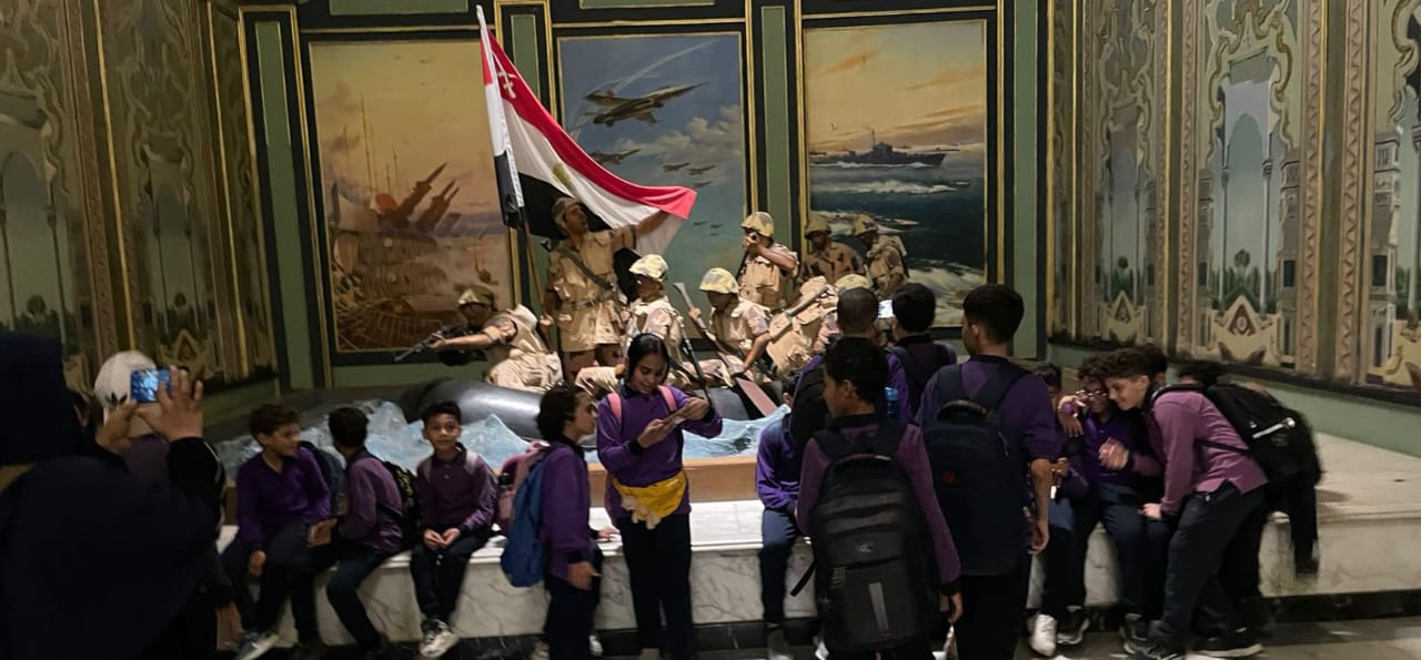 في هذا الإطار، نظم أتوبيس الفن الجميل التابع للإدارة العامة لثقافة الطفل، جولة ميدانية لأطفال مدرسة نوال عامر بمنطقة السيدة زينب إلى المتحف الحربي بالقلعة، حيث استقبلتهم في بداية الزيارة أماني توفيق مدير عام منطقة آثار القلعة، مقدمة شرحا مبسطا حول انتصار أكتوبر العظيم، ودور القوات المسلحة المصرية في تحقيق النصر وصون الوطن، مؤكدة أن بطولات الجيش المصري كانت وما تزال درعا للأمن والتنمية في ربوع مصر.
