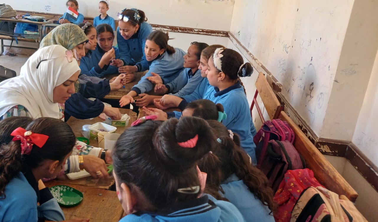 كما أُقيمت ورشة أشغال فنية في إطار دعم المرأة وتمكينها اقتصاديًا، أشرفت على تنفيذها ماهيتاب نبيل ورانيا سعيد، حيث جرى تدريب المشاركات على التعرف على الخامات المستخدمة في تصميم الإكسسوارات والميداليات بالخرز.