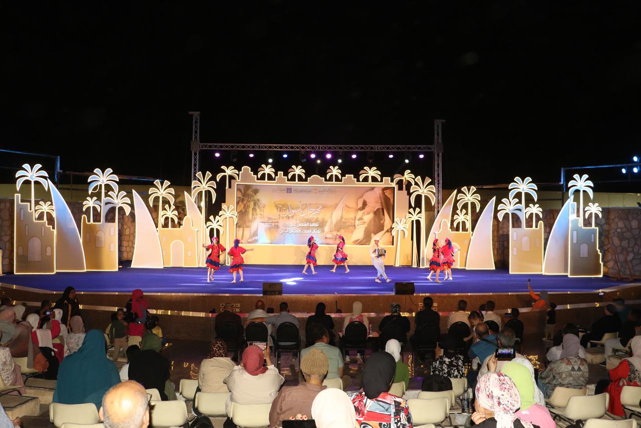 في ليلة جديدة من ليالي الإبداع الشعبي، تواصلت فعاليات مهرجان أسوان "تعامد الشمس"، الذي يقام تحت رعاية الدكتور أحمد فؤاد هنو وزير الثقافة، واللواء الدكتور إسماعيل كمال محافظ أسوان، وتنظمه الهيئة العامة لقصور الثقافة برئاسة اللواء خالد اللبان، احتفالا بظاهرة تعامد الشمس على وجه تمثال الملك رمسيس الثاني بمعبد أبو سمبل، وتستمر فعالياته حتى الثاني والعشرين من أكتوبر الجاري.