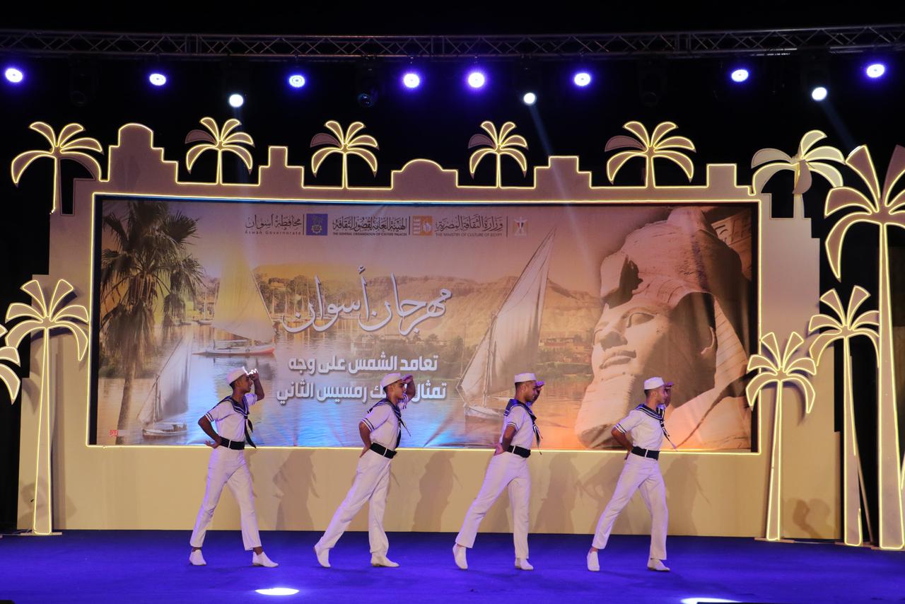 وشهدت الليلة عروضا فنية مبهرة جسدت تنوع الفنون الشعبية المصرية بين الساحل والجنوب، حيث تألقت فرقة بورسعيد للفنون الشعبية على مسرح فوزي فوزي بأسوان، وقدمت باقة من أشهر رقصاتها المستوحاة من بيئة القناة والبحر، منها: "آه ياللي"، "الصياد"، "الخلالة"، "الحجالة"، "السمسمية"، "شباب البحر"، إلى جانب لوحات فنية عن عمال القنال، في عرض حمل عبق المدينة الباسلة بروحها المقاتلة وشعبها البحار.