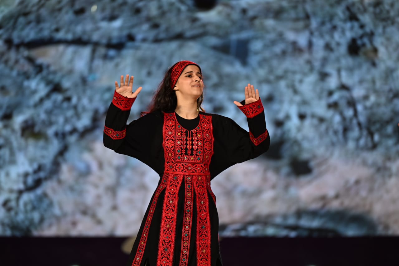 أما فرقة وطن بقيادة مجاهد السوسي، والحاصلة على المركز الأول كأفضل فرقة ومدرب في فلسطين، قدمت فقرات استعراضية عكست روح الصمود منها أنا دمي فلسطيني، وفي دقة أبوابنا.