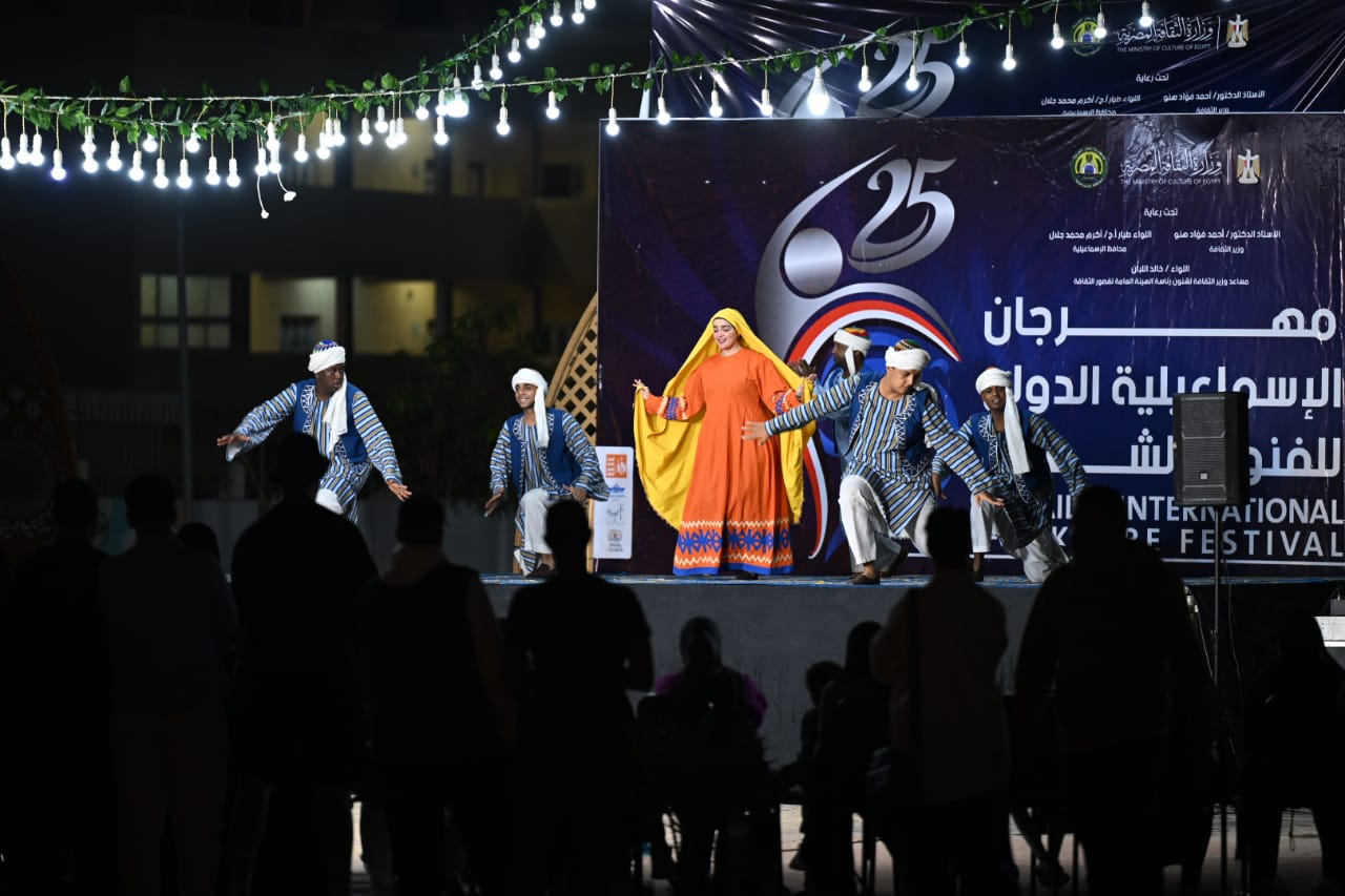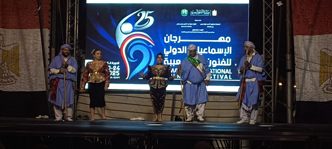 تتواصل أجواء البهجة والاحتفاء بالتراث في مهرجان الإسماعيلية الدولي للفنون الشعبية في دورته الخامسة والعشرين، الذي يقام برعاية الدكتور أحمد فؤاد هنو وزير الثقافة، واللواء أكرم جلال محافظ الإسماعيلية، وتنظمه وزارة الثقافة ممثلة في الهيئة العامة لقصور الثقافة برئاسة اللواء خالد اللبان، والإدارة المركزية للعلاقات الثقافية الدولية، بالتعاون مع محافظة الإسماعيلية، وبالتنسيق مع وزارة الشباب والرياضة، وهيئة قناة السويس، وهيئة التنشيط السياحي.