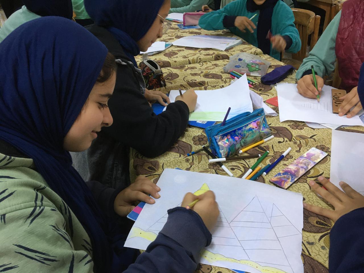 كما شهدت مدرسة المشتل الإعدادية المشتركة ورشة تصميم لوحات بتقنية الكولاج، تدريب الفنانة ماريان مجدي.