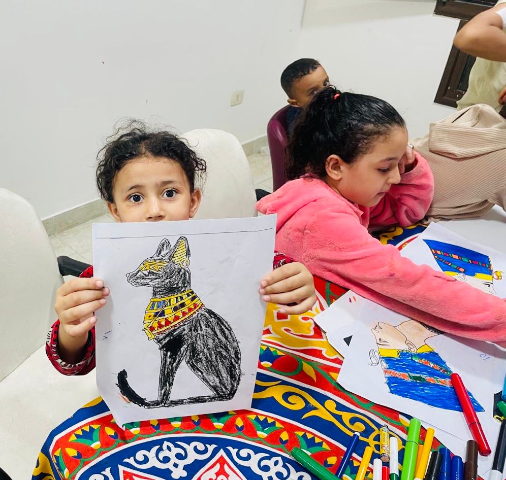 كما نفذت ريهام نبيل مجلة حائط بعنوان "المتحف المصري الكبير" تضمنت معلومات حول مقتنيات المتحف ومساحته وموقعه، ونفذت مريم حسن ورشة رسم وتلوين للوحات مصغرة لمقتنيات وقطع أثرية، بينما أبدعت ناريمان نبيل في تصميم بطاقات تهنئة مزخرفة بطرز فنية متنوعة.