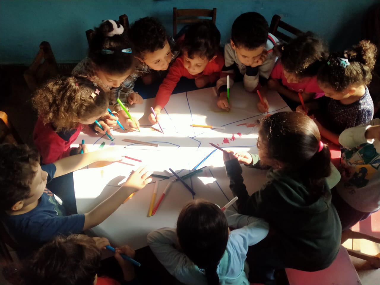 ونفذت ورشة فنية لتصميم رمز مفتاح الحياة، استخدم خلالها الأطفال خامات الكارتون والألوان الفلوماستر، تدريب الفنانة د. زينب الشوربجي.