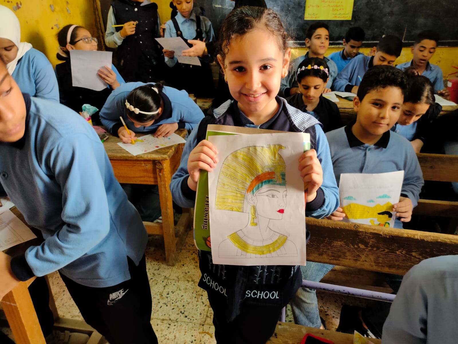 أعقب ذلك ورشة فنية دربت خلالها الفنانة شيماء إسماعيل الطلاب على تصميم لوحات على شكل بردية لكل من الملك توت عنخ آمون، الملكة نفرتيتي والملكة كليوباترا.