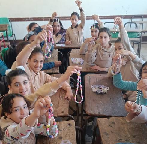 وشهدت القافلة تنفيذ عدد من الورش الفنية المتنوعة التي تستهدف دعم مهارات الطلاب وتعزيز قدراتهم الإبداعية، حيث قدمت ورشة أساسيات الكروشيه تنفيذ إيمان طبانة، وورشة الخرز وصناعة الأساور تنفيذ مها صلاح، إلى جانب ورشة التلوين على الوجه تنفيذ رامي أبو حسين، أعقبها ورشة التلوين على الورق تنفيذ ضحى كافوري. كما تضمنت الأنشطة ورشة تدوير الخامات بالفوم الجليتر تنفيذ هبة القاضي، وورشة تدوير الخامات بالصلصال تنفيذ نهى مبارك.