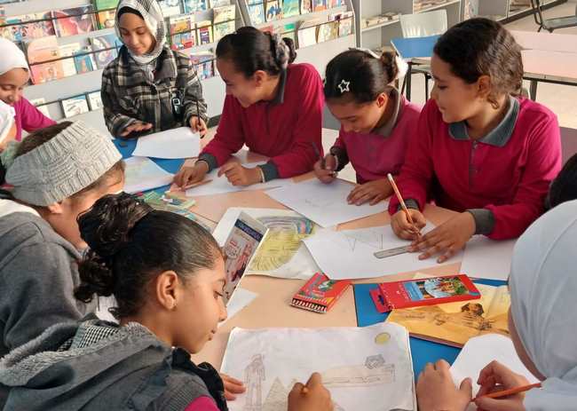 وفي سياق متصل، نفذت مكتبة علي الراعي، مجلة حائط بعنوان "مصر القديمة" شملت التعريف بأبرز المعالم الأثرية، تلاها تنفيذ ورشة فنية بعنوان "الحضارة المصرية عبر العصور"، تدريب حنان برعي، وسط تفاعل كبير من قبل طلاب مدرسة الرياح الابتدائية.