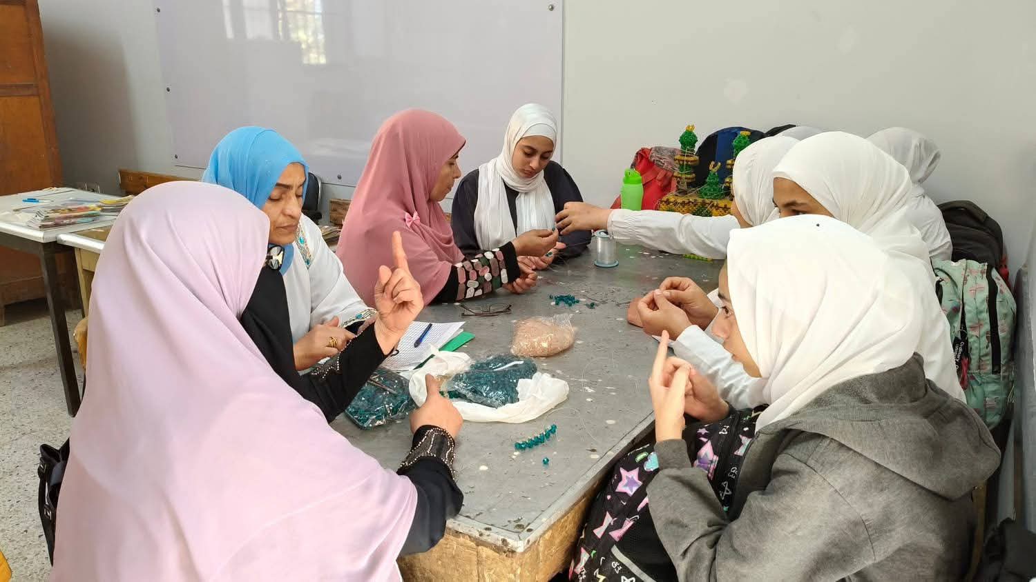 وضمن نشاط نادي المرأة، انطلقت أولى فعاليات ورشة الأشغال اليدوية بالخرز، قدمتها كل من شادية محمد وإيمان محمد، وتعلم خلالها الطلاب تصميم مجسمات متنوعة مع مراعاة تنسيق الألوان.