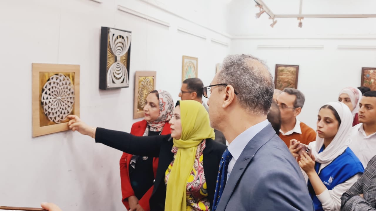 وعبر الفنانون عن سعادتهم بالمشاركة، وأوضحت د. أماني فوزي، أستاذ أشغال المعادن والحلي بقسم التربية الفنية كلية التربية النوعية بجامعة الزقازيق، أنها قدمت مجموعة من الأعمال المنفذة على النحاس بتقنية الطرق بالبارز والغائر، جمعت بين الرموز المصرية القديمة المصاغة بإيقاع زخرفي حديث، وبين المناظر الطبيعية والتشكيلات النباتية التي تعتمد على العلاقات بين الخطوط العضوية والملامس المعدنية، وأضافت أنه تم استخدام المينا الباردة كوسيط لوني يمنح السطح طبقات شفافة وتدرجات تعزز البنية التشكيلية وتظهر التفاصيل الدقيقة للنقوش.