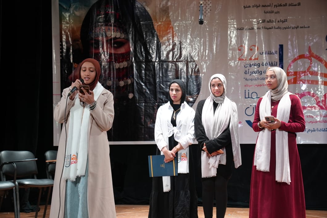 واختتمت بتوجيه الشكر لوزير الثقافة ومحافظ جنوب سيناء ورئيس الهيئة وقياداتها، إلى جانب الإدارات المعاونة والمجلس القومي للمرأة باعتباره شريكا أساسيا في نجاح فعاليات الملتقى.