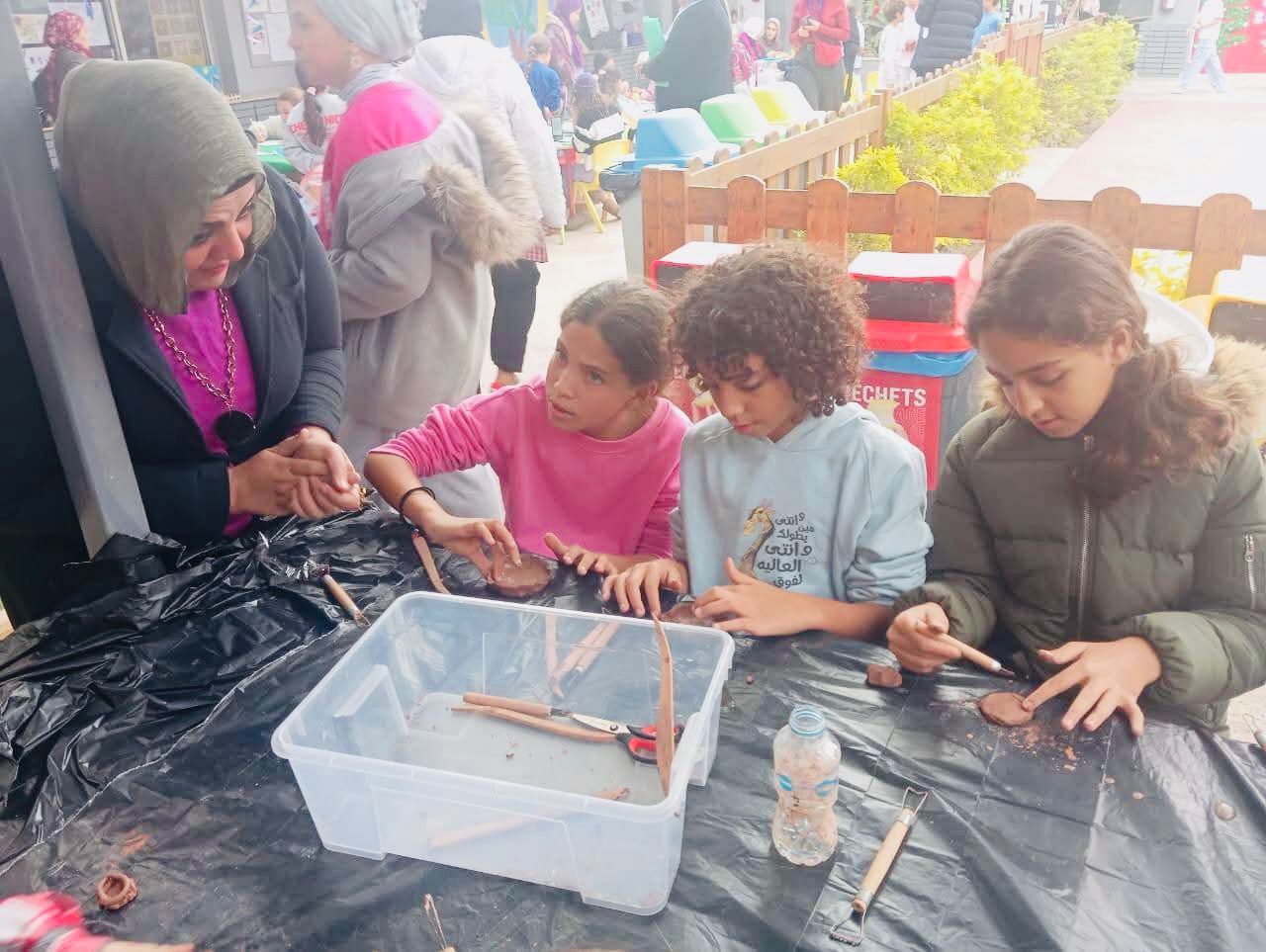 وتم تنفيذ ورشة قص ولصق بطريقة الموزاييك، قدمتها الدكتورة أماني الشيخ، وأسهمت في تنمية الحس الفني لدى المشاركين وتعريفهم بأساليب الفن الزخرفي. كما قدم الفنان سيد المصري عرضا فنيا للتنورة التراثية.