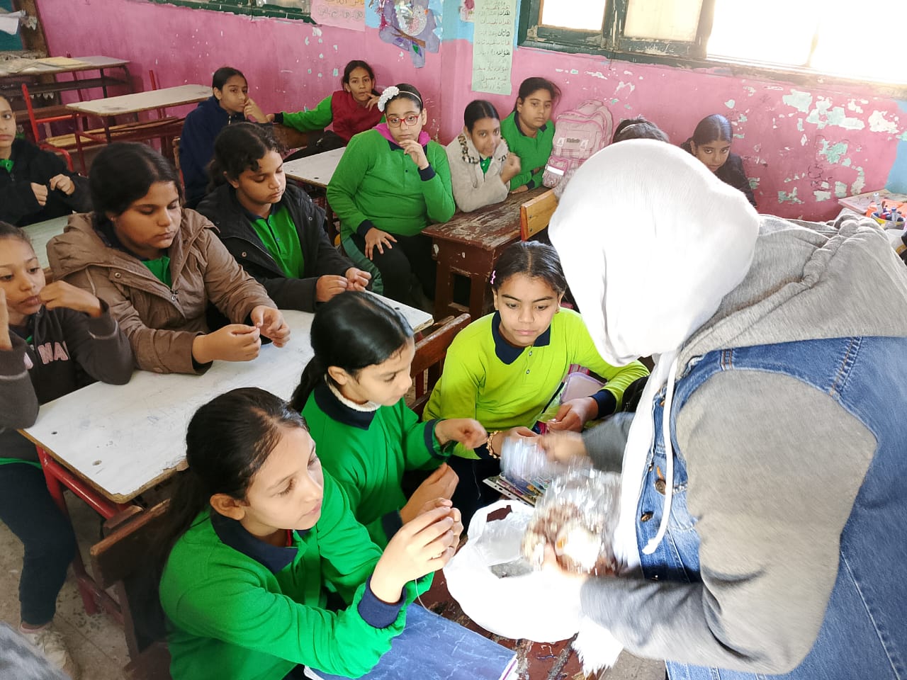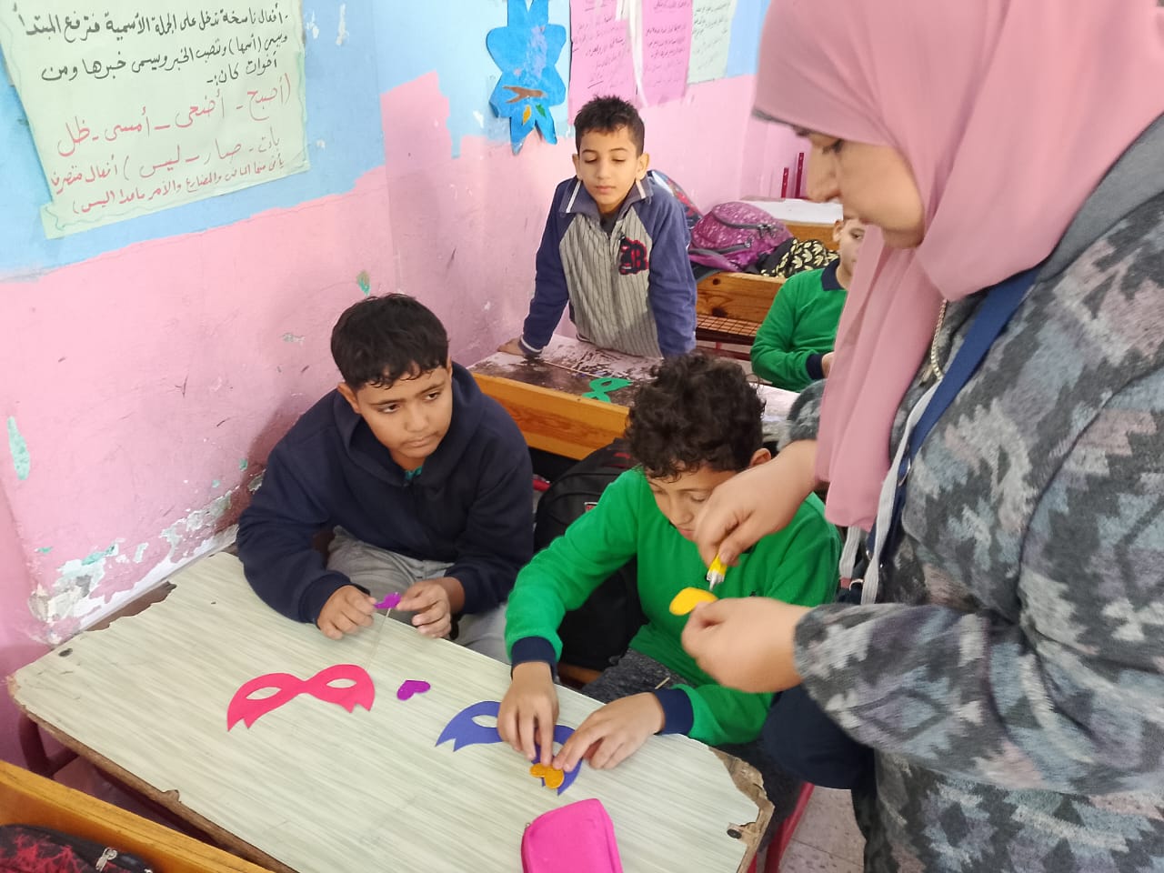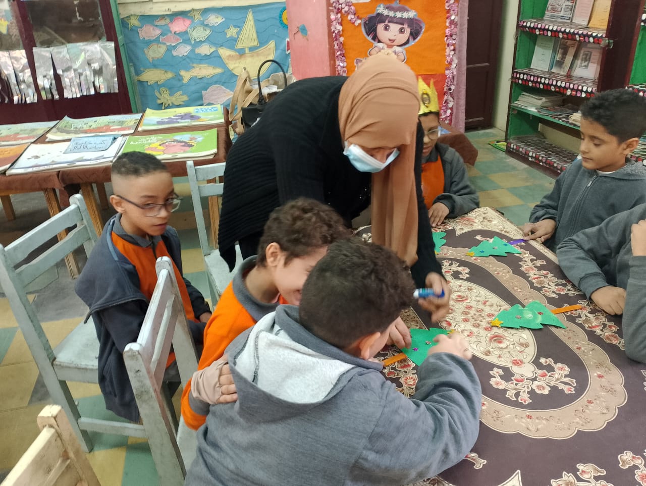 وفي مدرسة السلام الابتدائية، قدم فنانو قصر ثقافة 25 يناير مجموعة من الورش الفنية الهادفة إلى تنمية مهارات الابتكار والإبداع لدى التلاميذ، وتعليمهم إعادة تدوير الخامات البسيطة لصناعة مشغولات يمكن الاستفادة منها في الحياة اليومية.