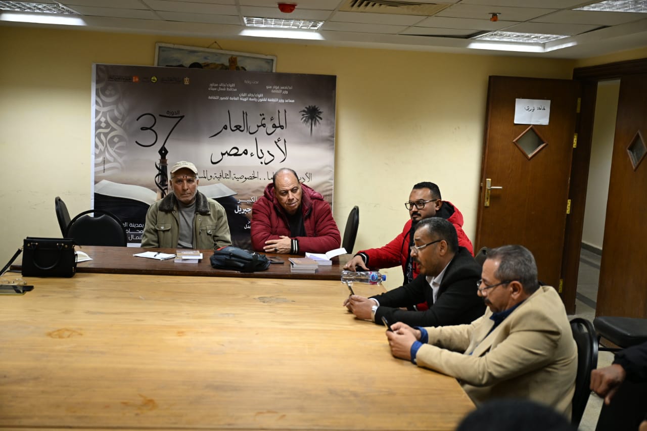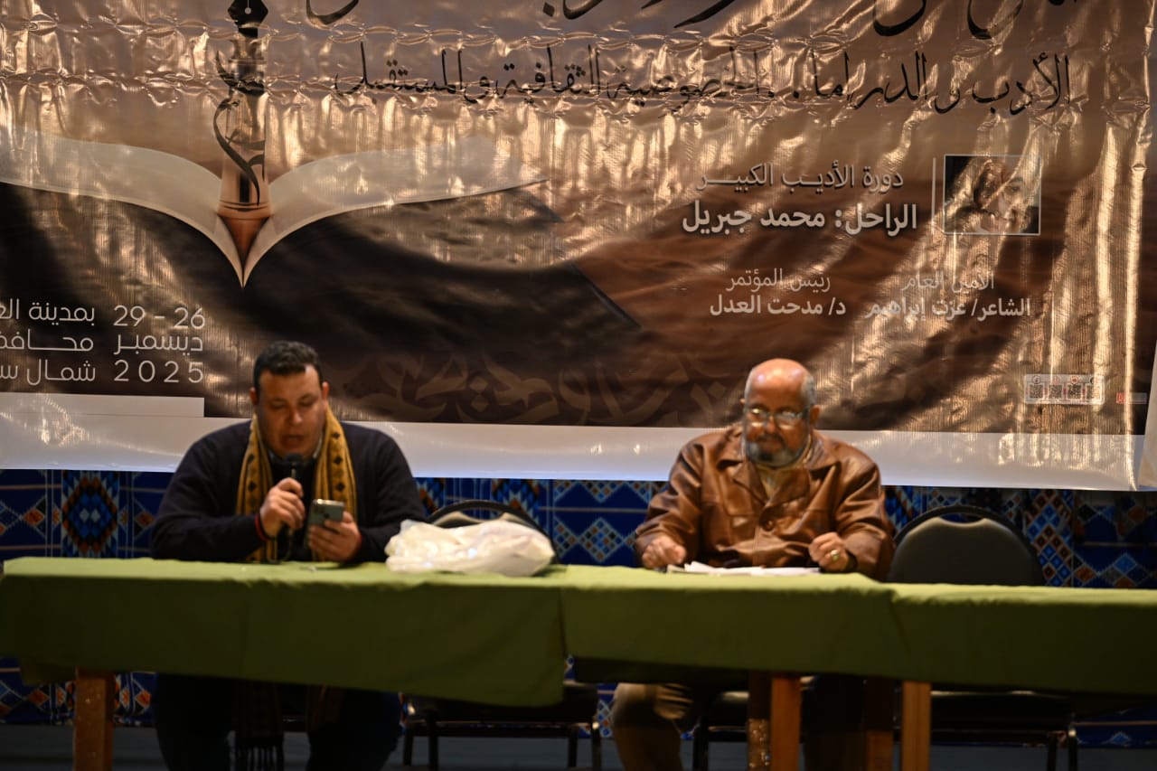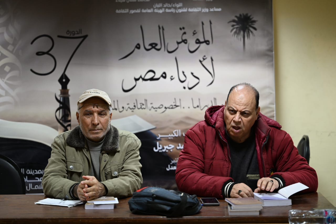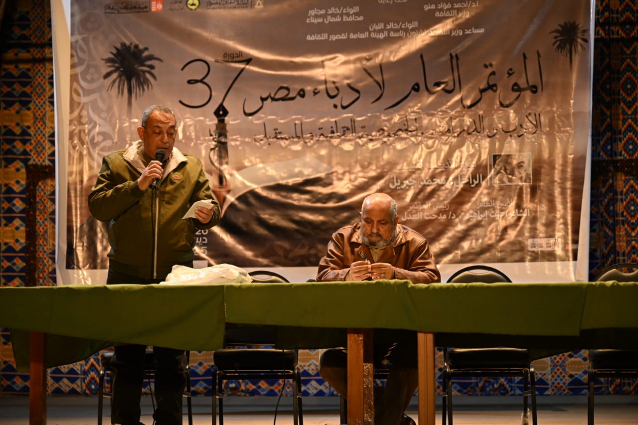 شهد قصر ثقافة العريش استمرار فعاليات المؤتمر العام لأدباء مصر في دورته السابعة والثلاثين، دورة "الأديب الكبير الراحل محمد جبريل"، والذي يقام هذا العام تحت عنوان "الأدب والدراما.. الخصوصية الثقافية والمستقبل"، برعاية الدكتور أحمد فؤاد هنو وزير الثقافة، واللواء الدكتور خالد مجاور محافظ شمال سيناء، وتنظمه الهيئة العامة لقصور الثقافة برئاسة اللواء خالد اللبان، ويرأس المؤتمر الشاعر والسيناريست الدكتور مدحت العدل، ويتولى أمانته العامة الشاعر عزت إبراهيم، وذلك في إطار برامج وزارة الثقافة، وتستمر فعالياته حتى 29 ديسمبر الجاري.