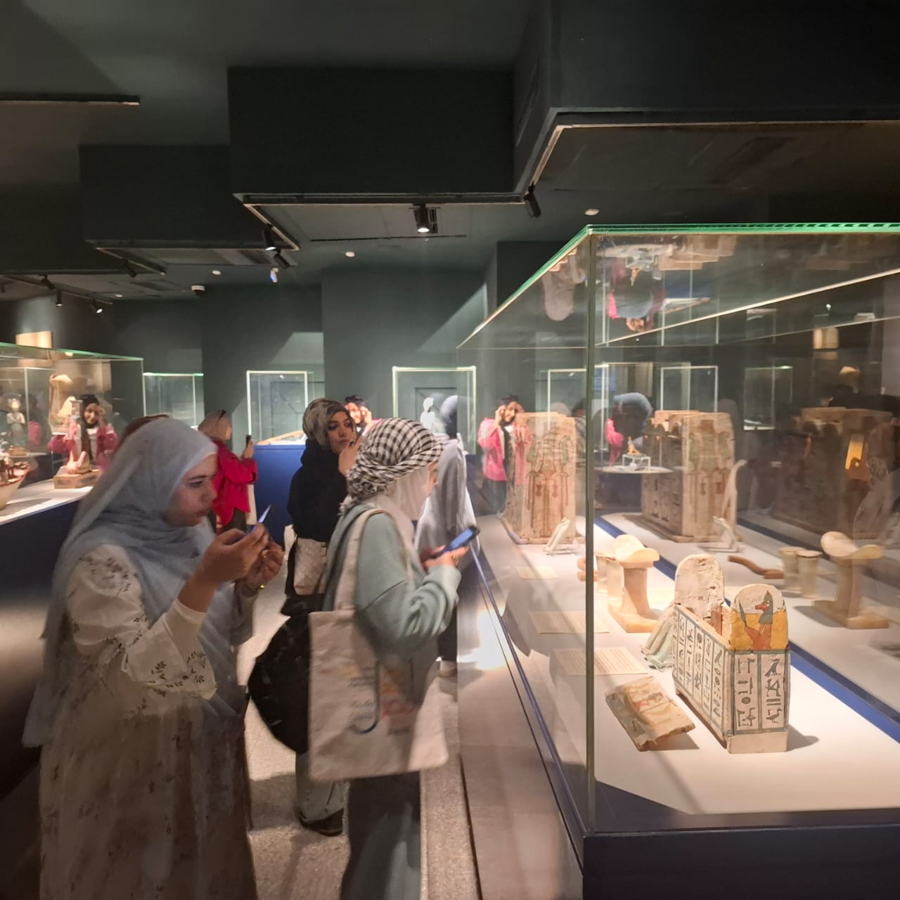 وتواصلت فعاليات الزيارة بحضور الدكتورة دينا هويدي، مدير عام الإدارة العامة لثقافة المرأة، والمدير التنفيذي لمشروع أهل مصر للفتاة والمرأة، حيث أوضحت وكيل المتحف أن المتحف يضم مجموعة مميزة من التوابيت المزينة بأغطية تحمل رسومات ونقوشًا دينية، إلى جانب تمائم كانت توضع مع المتوفى لتوفير الحماية في الحياة الآخرة، فضلا عن الأدوات الطبية المستخدمة في عملية التحنيط، والمواد المستخدمة فيها من زيوت وعطور وملح النطرون.
