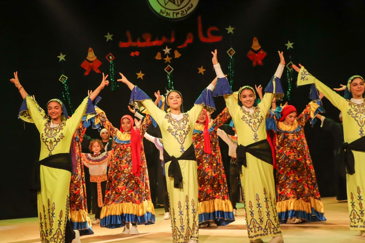 بدأت فعاليات الحفل بعزف للنشيد الوطني، فيما قدمت فرقة مركز تنمية المواهب، بمسرح 23 يوليو بالمحلة، باقة منوعة من الاستعراضات الفلكلورية، والتابلوهات الراقصة، من تدريب فريدة المصري، وعمر البدري، ومن إخراج عبد الرحمن سالم، ومن بينها: البمبوطي، والصعيدي، والحجالة، وصوت بلادي، وخدنا إجازة، وشخبط شخابيط، وجدو عبده، ومبدعين البلد.
