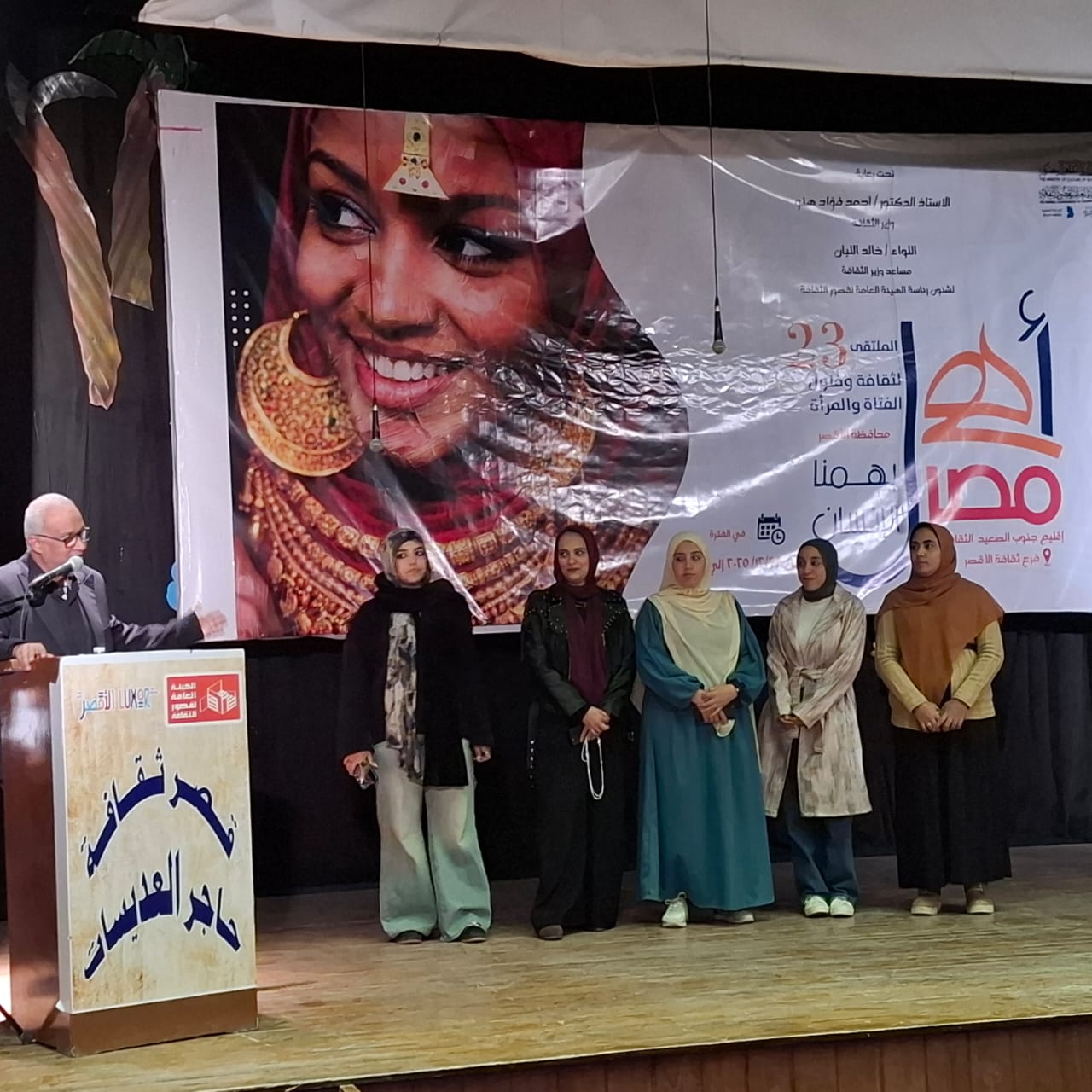 وفي كلمته، أعرب نائب محافظ الأقصر عن امتنانه لما قدمه الملتقى من فعاليات تسهم في دمج فتيات المحافظات الحدودية، مؤكدا أن تنمية هذه المحافظات تمثل أولوية وطنية، وأن الاستثمار في العنصر البشري، وبخاصة المرأة، يعد حجر الزاوية في بناء مجتمع متماسك قادر على الحفاظ على الهوية الوطنية وتعزيز قيم الولاء والانتماء، لافتا إلى دور المرأة في غرس القيم الثقافية والفنية، وكونها خط الدفاع الأول عن المجتمع.