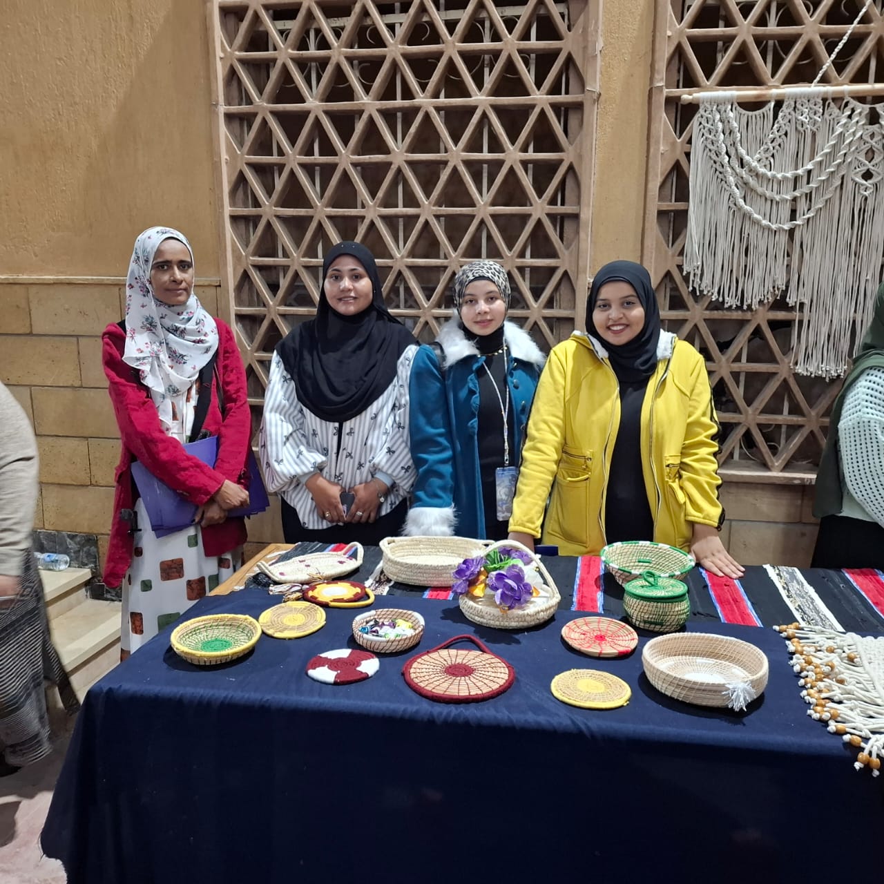 وتفقد الحضور نتاج الورش الفنية والحرفية التي نُفذت خلال الملتقى، والتي شملت ورشة فن المكرمية تدريب شيرين عفيفي، وورشة التطريز الفلاحي تدريب إيناس حسين، وورشة الأشغال الخيامية تدريب هبة فتوح، وورشة شنط باللولي والخرز تنفيذ منى عبد الوهاب، وورشة النخيل والخوص تدريب نصرة محمود.