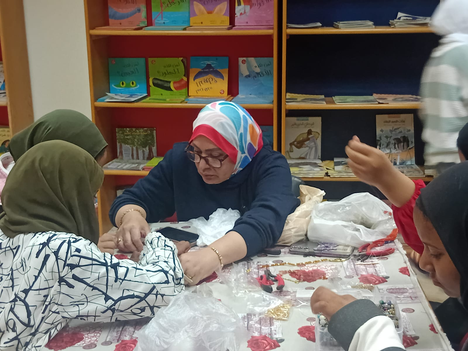 وتواصلت فعاليات اليوم مع مجموعة من الورش الفنية والحرفية لتدريب الشباب والفتيات، شملت ورشة لتعليم فن الأركت قدمها المدرب أيمن السعدني، وورشة الحلي والإكسسوارات للفنانة نهى الكاشف، وورشة الفيانسيه "الرسم على الخزف" تنفيذ د. أميمة رشاد، إلى جانب ورشة الكونكريت التي قدمتها سهام إسماعيل.