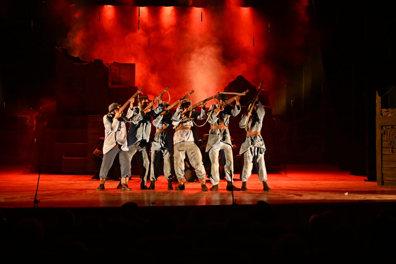 بدوره، أكد محمد بحيري، مصمم استعراضات الدراما الحركية، أن العمل مر بمراحل تدريب شاقة منذ تقديمه على مسارح قصور الثقافة، خاصة في مشاهد الحرب التي اعتمدت على حركة دقيقة.