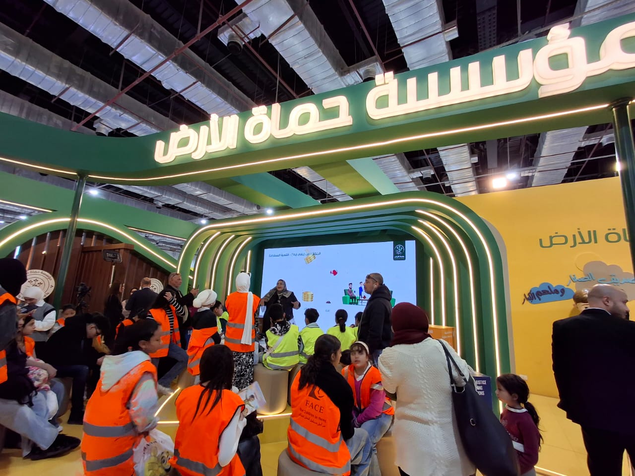 أعقب ذلك لقاء داخل جناح مؤسسة حماة الأرض بالمعرض، استعرضت خلاله الدكتورة جيهان حسن، مدير عام الإدارة العامة لثقافة الطفل والمشرف العام على المشروع الثقافي، مفهوم التنمية المستدامة وكيفية الحفاظ على الموارد بما يضمن حياة كريمة للأفراد والأجيال القادمة.