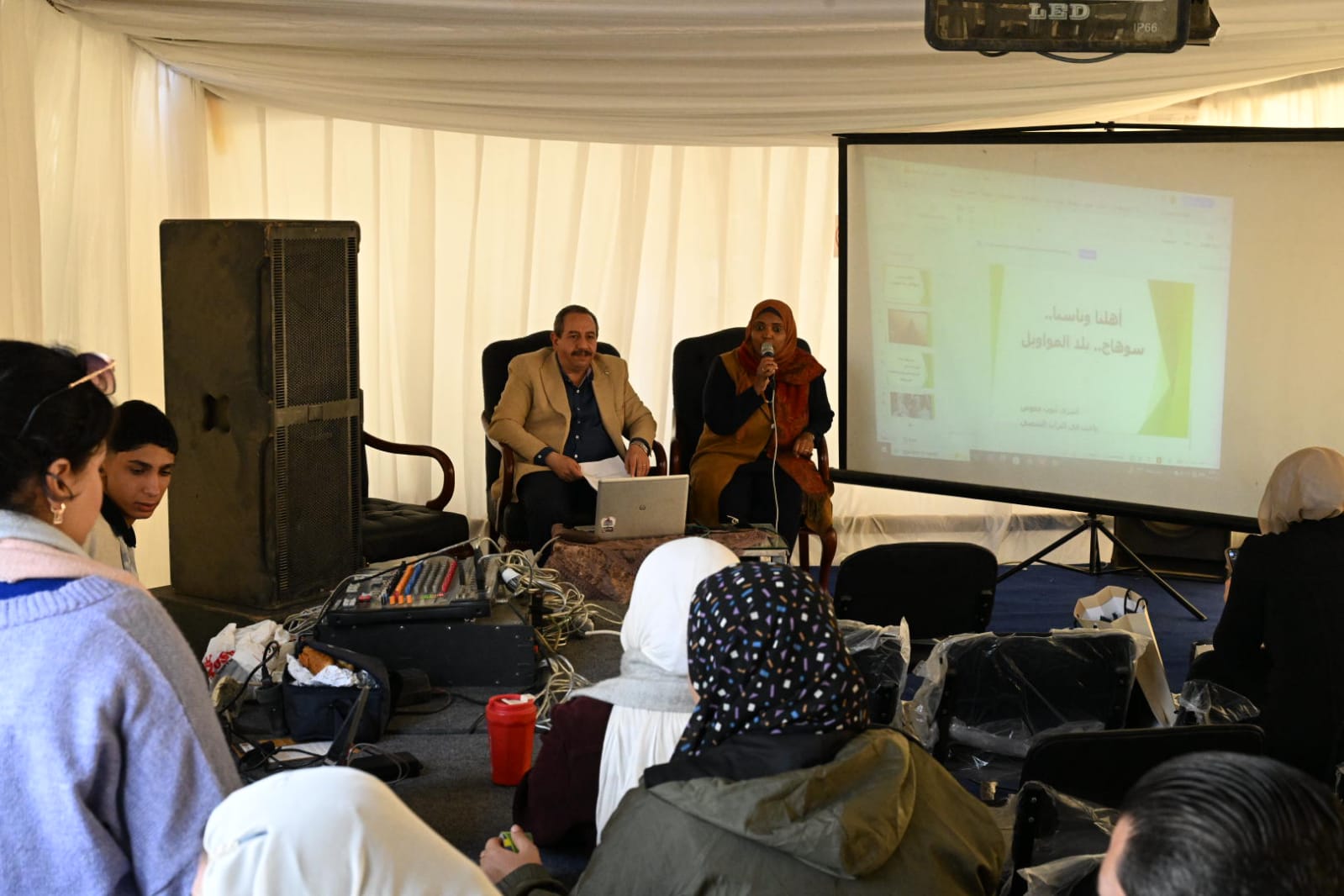 وتواصلت الفعاليات بلقاء ثقافي عن محافظة سوهاج، أدارته الدكتورة دعاء محفوظ، منسق الفعاليات بالمخيم، وشارك به الباحث في التراث الشعبي أشرف أيوب.