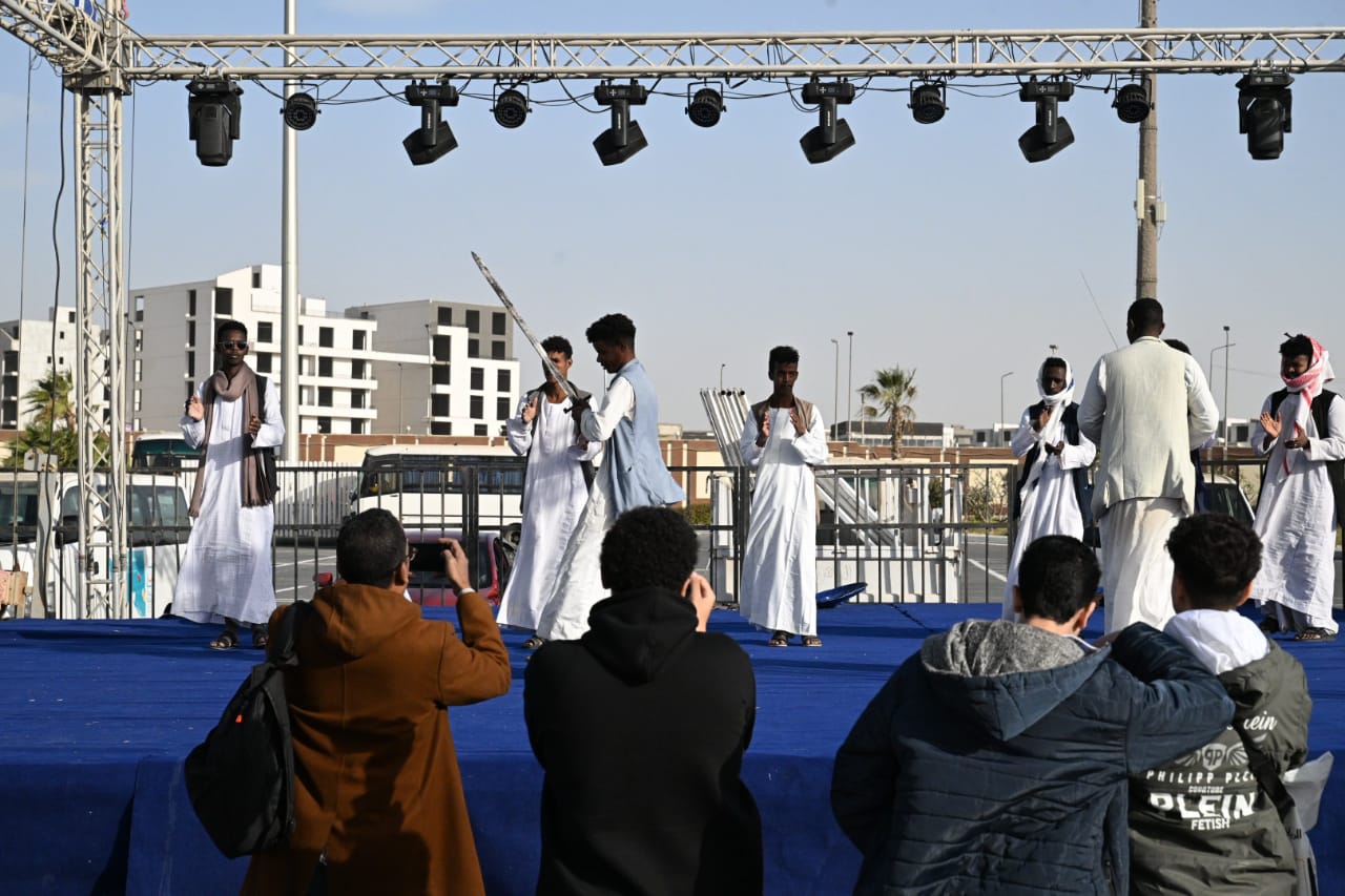 كما واصلت فرقة حلايب التلقائية عروضها المستوحاة من أجواء الصحراء، بمصاحبة الآلات التقليدية.
