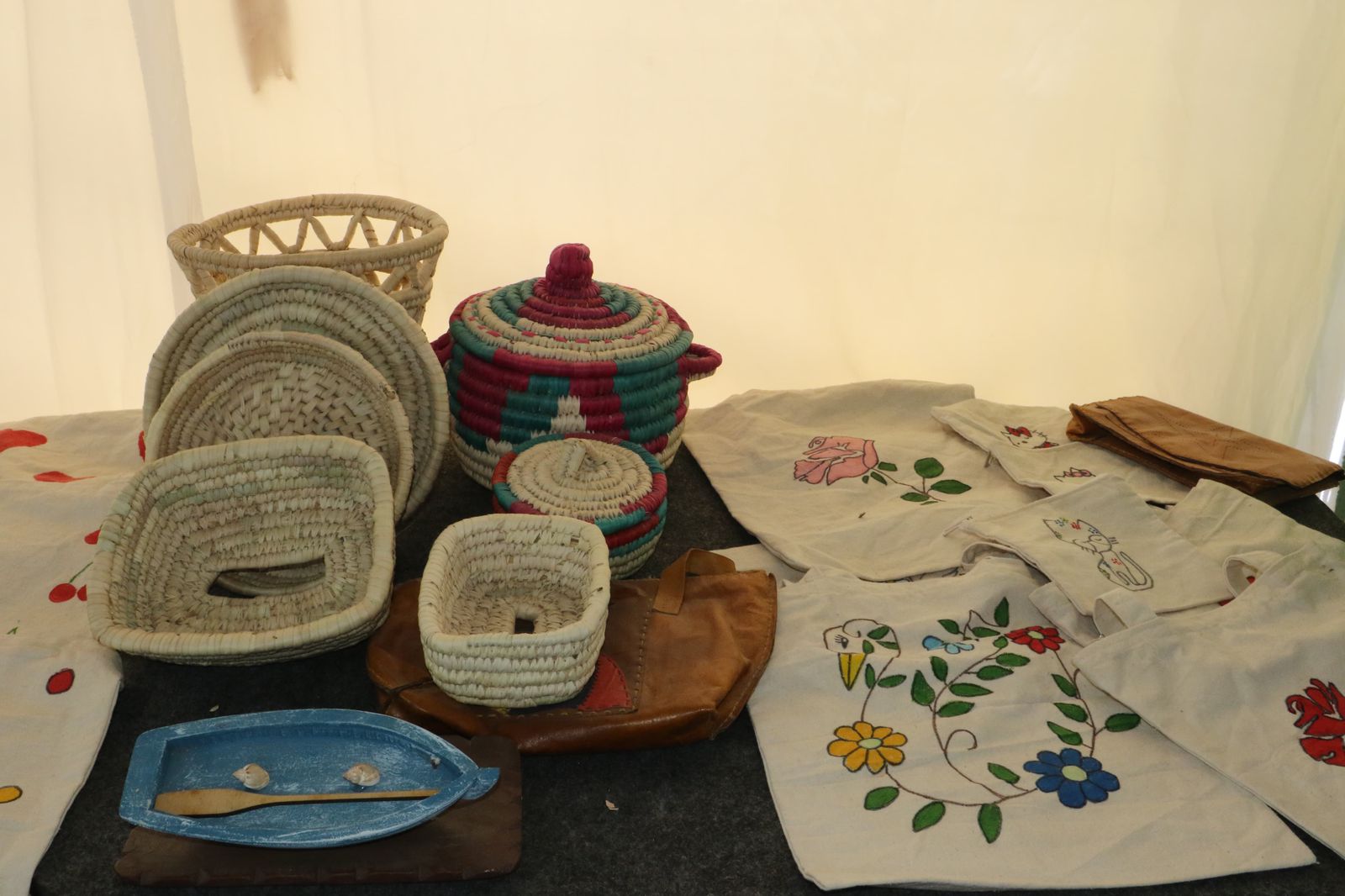 وتفاعل رواد المخيم مع معرض الحرف البيئية التقليدية والتراثية المصاحب للمخيم والذي يحوي علي مجموعة متنوعة من أزياء تراثية منها الزي السيناوي والجلباب والتوب ومنتجات حرفية منها الخيامية، والخوص، والطباعة على القماش، ومشغولات الخرز، والمكرمية، والجلود والمعرض تحت إشراف الإدارة العامة للجمعيات الثقافية برئاسة عبير الرشيدي.