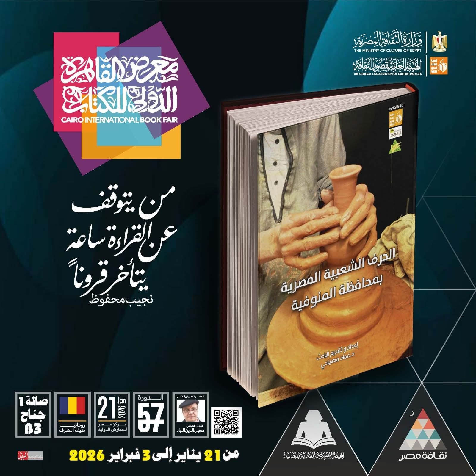 ومن إصدارات الهيئة كتاب "الحرف الشعبية المصرية بمحافظة المنوفية" إعداد وتقديم الدكتور عماد مصيلحي، ويعرض الكتاب بالرصد والوصف والتحليل لمجموعة من أهم الحرف الشعبية المصرية التي تزخر بها محافظة المنوفية التي اشتهرت بها منذ أزمنة بعيدة ربما تعود إلى أجدادنا من قدماء المصريين مرورا بكل العصور التالية حتى وقتنا الحالي والتي تلبي منتجاتها متطلبات الحياة اليومية وتعد مصدرا الدخل الوحيد لكثير من أهلها في مختلف ربوعها والتي يعتز أهلها بها إيمانا واعتزازا ويفتخر حرفيوها بها كل الافتخار ويعدونها جزءا من وجدانهم فيخرجونها في أشكال كثيرة وأعمال جمالية بديعة هي منتجاتهم من الحرف الشعبية المصرية.
