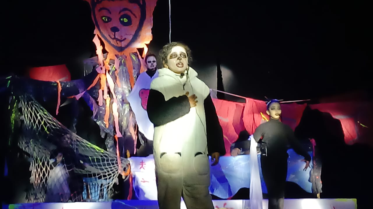 وتواصلت العروض مساء أمس بالعرض المسرحي الثاني "كونغ فو باندا" تأليف جوناثان إيبل، ألحان إسراء صابر، تنفيذ الديكور والملابس شادي قطامش، تصميم الإضاءة أحمد عوض، تسجيل ومونتاج الأغاني إسراء صابر، استعراضات وإخراج أحمد عوض.