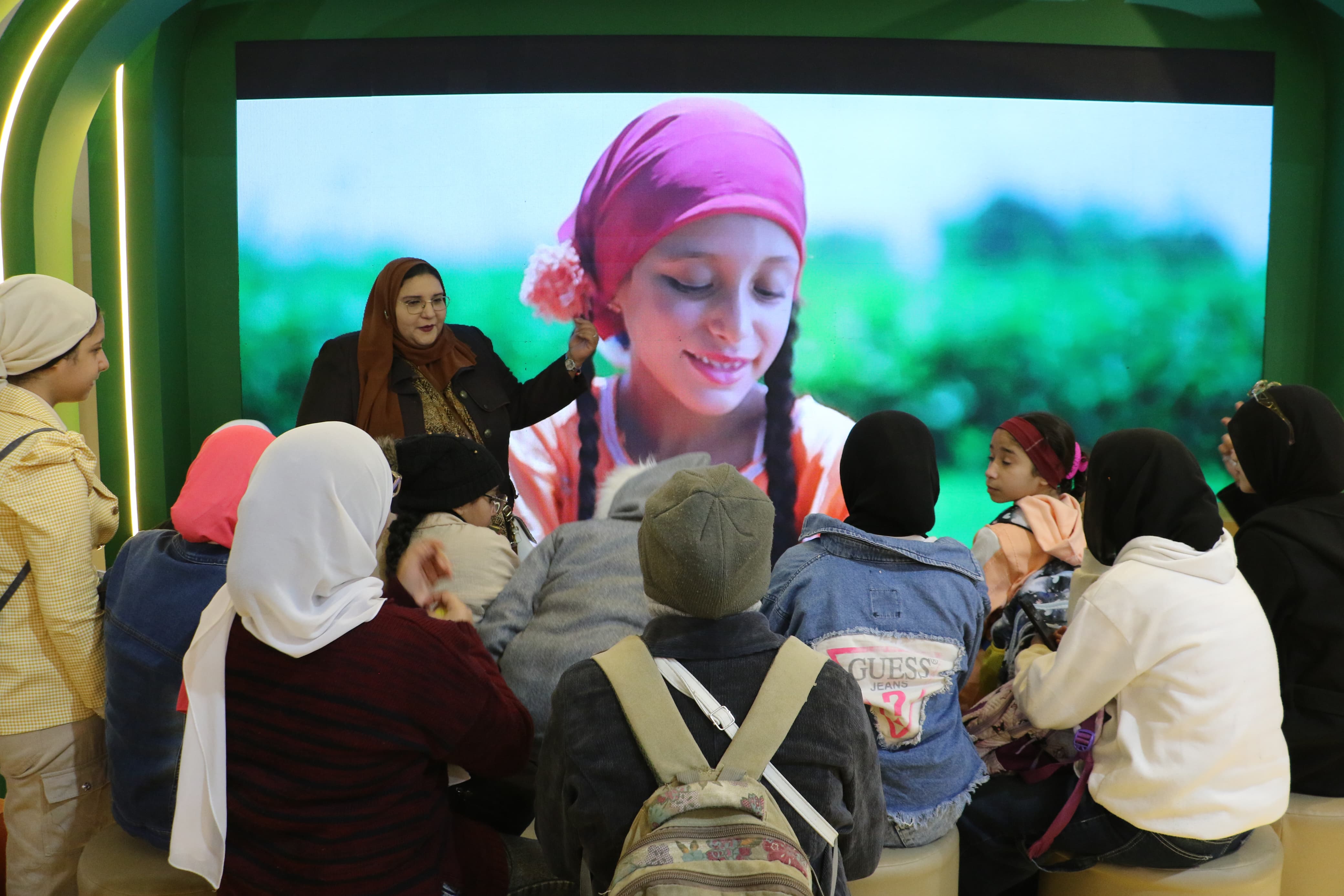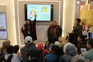 أما في جناح حلايب والشلاتين، تعرف الأطفال على المنتجات التراثية المصنوعة من الخوص والخرز، مثل السلاسل والحقائب والسلال، كما استمعوا الى شرح عن مدينة شلاتين وموقعها الجغرافي، واللغة البجاوية، والبيئة الجبلية، ومحمية جبل علبة، ومنطقة الشجرة، والمحميات الطبيعية التي تضم شجرة الأكاسيا.
