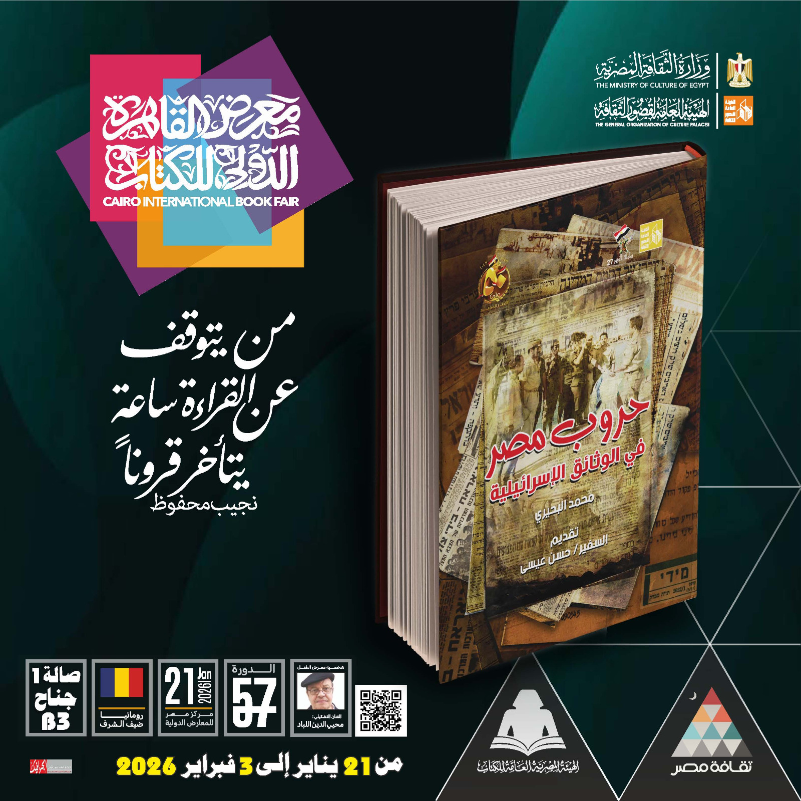 طرحت الهيئة العامة لقصور الثقافة، برئاسة اللواء خالد اللبان، مجموعة متنوعة من الإصدارات ضمن سلسلة "العبور"، وذلك من خلال جناحها في معرض القاهرة الدولي للكتاب في دورته السابعة والخمسين.