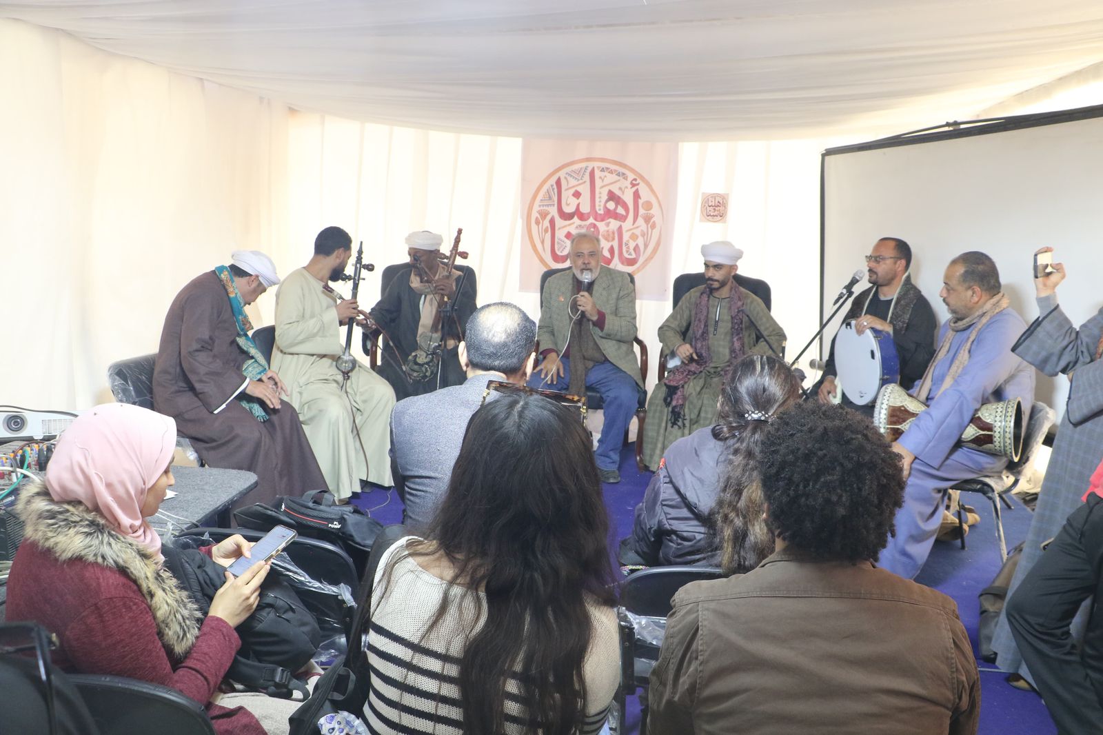 وأشار إلى عدد من كبار المبدعين، منهم العزب الإسناوي، ورشاد عبد العال، وسيد الإسناوي، ممن تعود أصولهم إلى بني هلال، إضافة إلى نماذج من فن المديح التي تفاعل معها الجمهور، تأكيدا على غنى التراث غير المادي بمدينة إسنا.