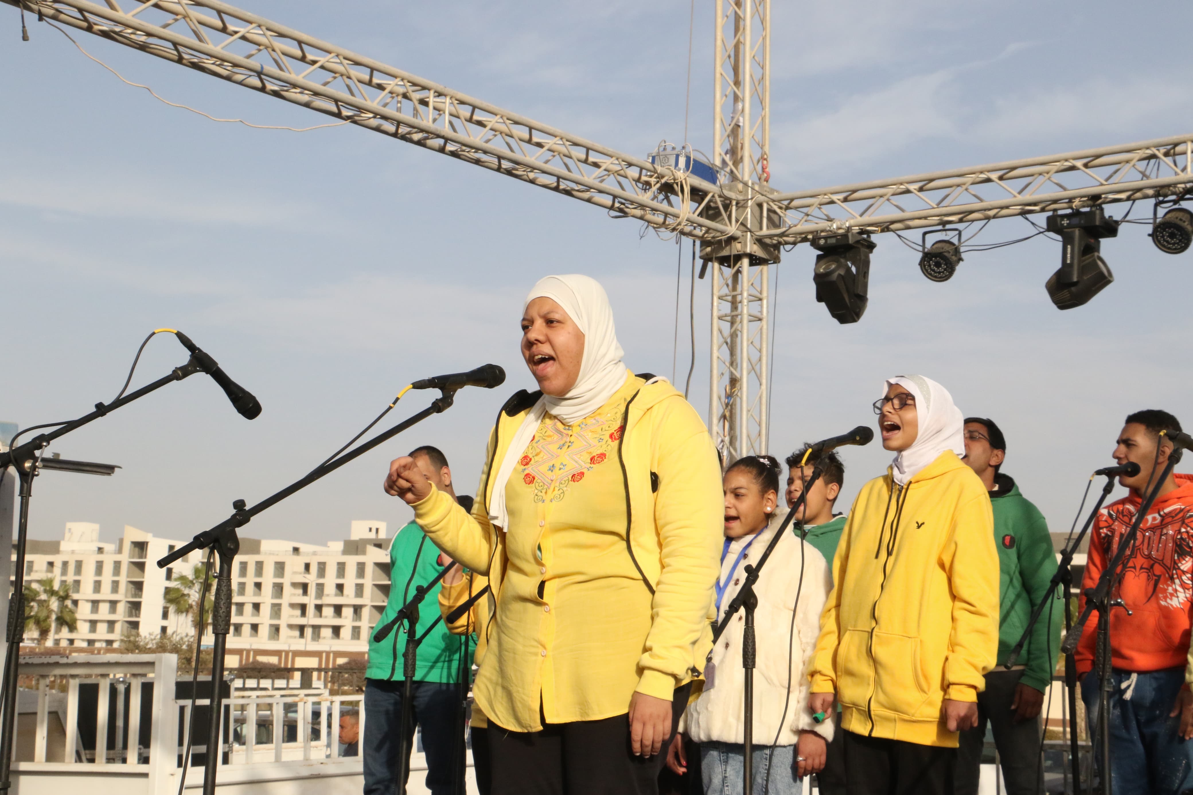 وعلى المسرح الصغير، قدمت فرقة الأراجوز المصري فقرات ترفيهية حازت على إعجاب الأطفال، فيما تغنى فريق كورال أطفال قصر ثقافة شبرا الخيمة لذوي الهمم، مجموعة من الأغاني الوطنية والطربية، منها: أحلف بسماها، يا حبيبتي يا مصر، وأما براوة، وغيرها، بقيادة المايسترو محمد توفيق.