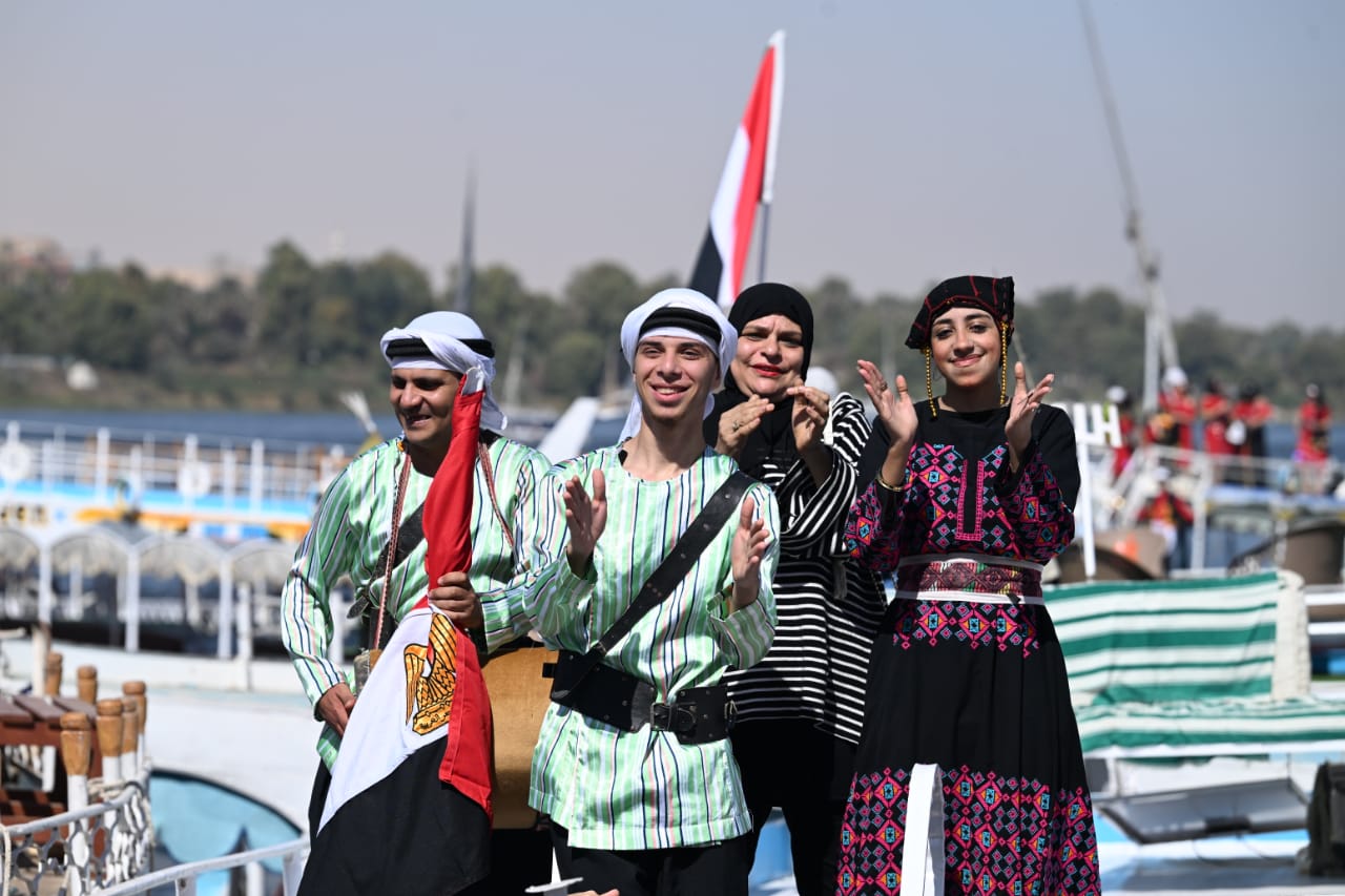 عروض الفنون الشعبية تزين نهر النيل في ديفيليه مهرجان أسوان الدولي الـ13