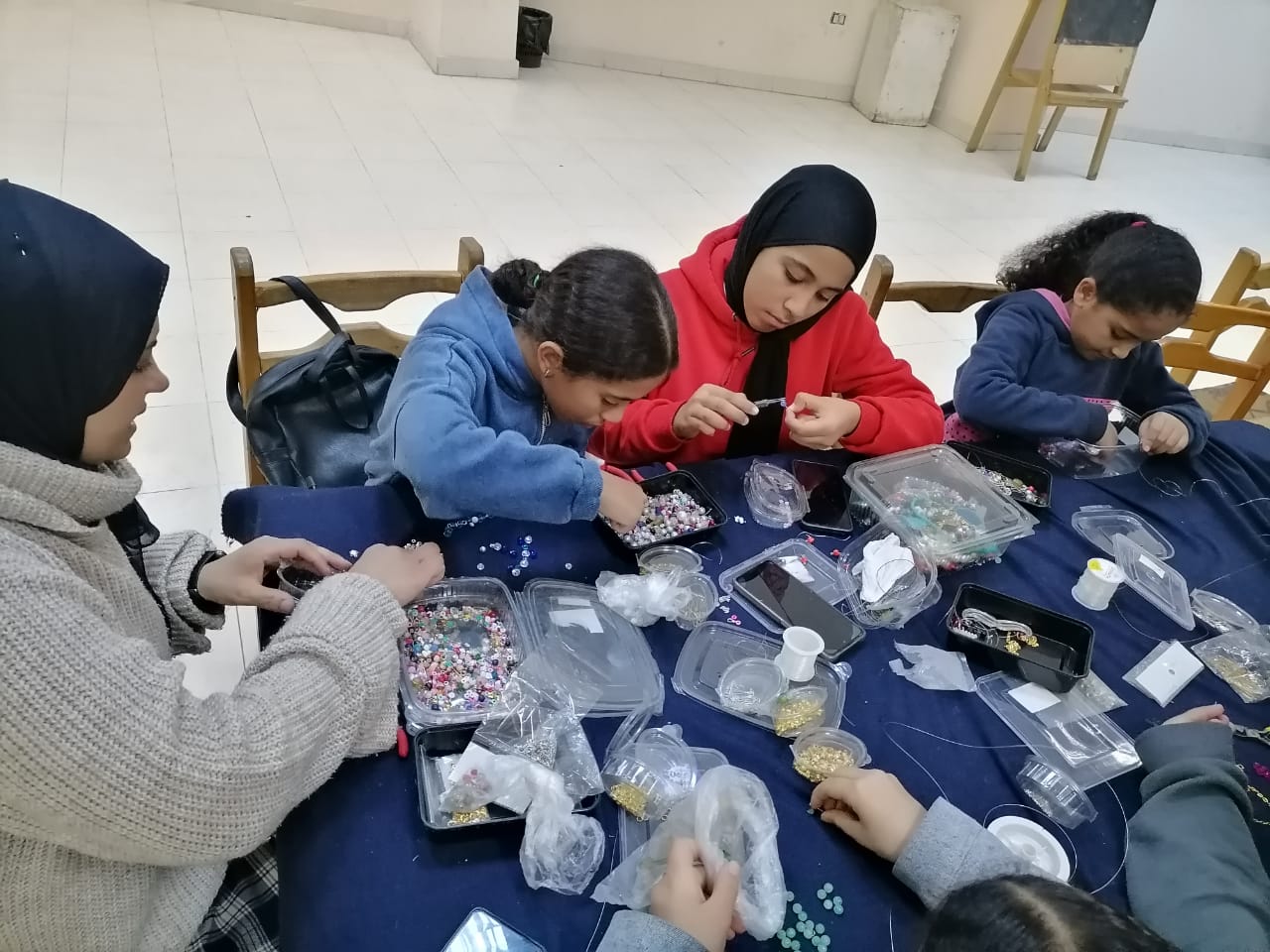 وتضمنت الفعاليات أيضا ورشة أشغال خرز تدريب مشيرة طلعت، باستخدام خرز المرمر واللولي الكريستال، حيث تعرف الأطفال على أساليب دمج الأحجار والخرز في تكوينات جمالية مبتكرة، بالإضافة إلى ورشة فنون تشكيلية "رسم ابتكاري" تدريب الفنان محمد ثابت، بهدف تنمية التذوق الحسي والجمالي لدى المشاركين وإطلاق طاقاتهم التعبيرية.