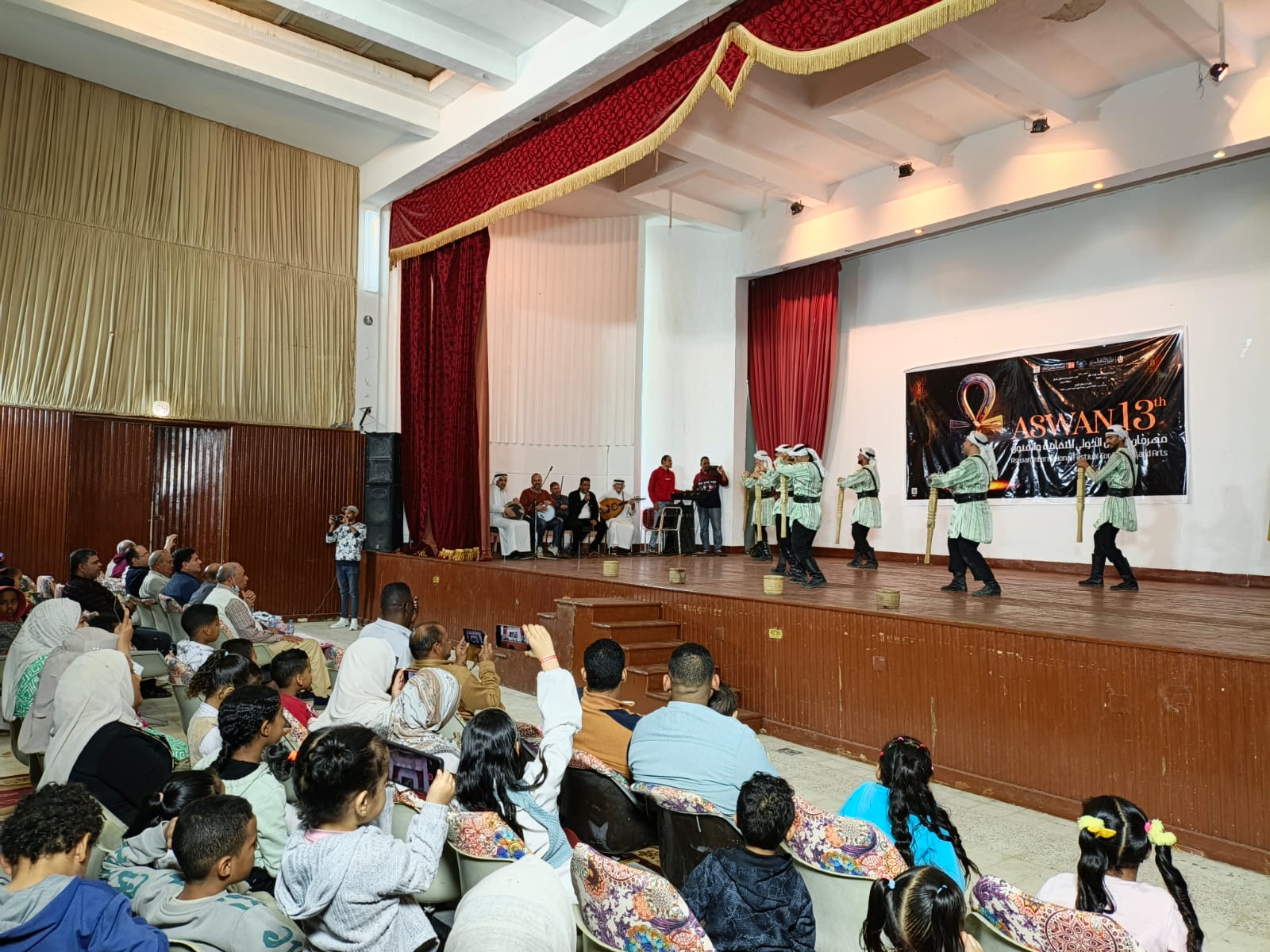 لليوم الخامس على التوالي، تواصلت فعاليات مهرجان أسوان الدولي للثقافة والفنون في دورته الثالثة عشرة، الذي يقام تحت رعاية الدكتور أحمد فؤاد هنو وزير الثقافة، واللواء إسماعيل كمال محافظ أسوان، وتنظمه الهيئة العامة لقصور الثقافة برئاسة اللواء خالد اللبان، بالتعاون مع الإدارة المركزية للعلاقات الثقافية الدولية، في إطار دعم القوة الناعمة المصرية وتعزيز دور الفنون في التنشيط السياحي والتبادل الثقافي بين الشعوب.