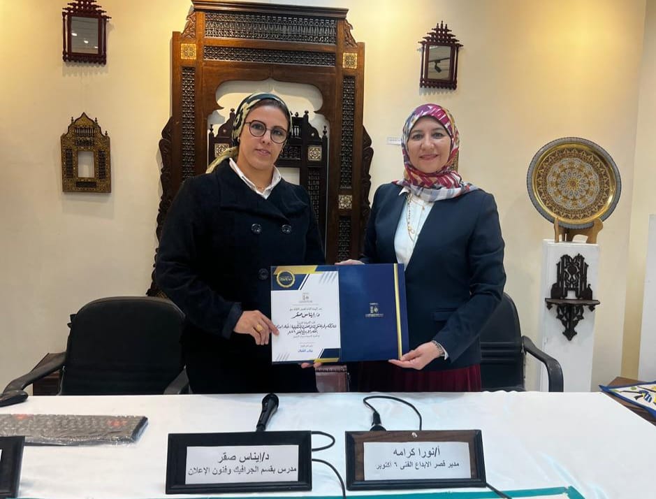 أدار اللقاء كل من نورا كرامة مدير قصر ثقافة الإبداع الفني، ونور حمدي، قومسير الملتقى، وشاركت به د. إيناس صقر، مدرس بقسم الجرافيك وفنون الإعلان، وذلك بحضور طالبات مدرسة الحي السابع الإعدادي والثانوي، ولفيف من الفنانين التشكيليين والمثقفين.