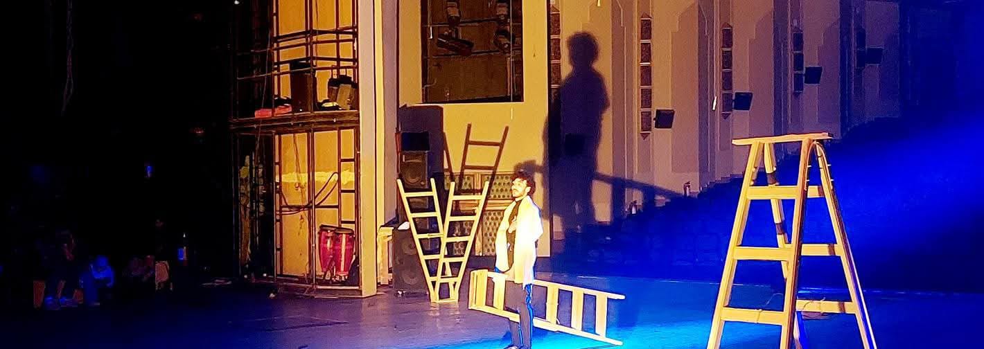 العرض تأليف مريم الجيزاوي، سينوغرافيا وإخراج محمود مدحت، وتدور أحداثه حول مجموعة من فناني المسرح "ممثل"، "ملقن"، و"ممثلة"، يتأملون أحوالهم بين حب المسرح وصعوباته، ومعاناة فناني الأقاليم من قلة الفرص وضعف الإمكانيات، والأحلام الكبيرة في أدوار البطولة التي لم تتحقق بعد.