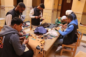 وفي ورشة ورشة المشغولات الجلدية، تحدثت الفنانة نسرين مجدي عن أنواع الجلود والأدوات المستخدمة، موضحة خطوات إعداد الباترون لتنفيذ محفظة جلدية.