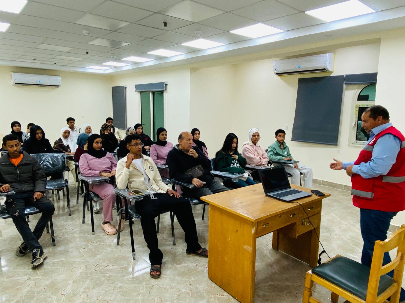 واستمرارا لسلسلة محاضرات "الإسعافات الأولية"، قدم أحمد محمد، رئيس لجنة الإغاثة بالهلال الأحمر المصري، محاضرة تناول خلالها أساليب التعامل السليم مع حالات الإغماء وطرق الإفاقة، إلى جانب كيفية التصرف الصحيح في حالات الكسور والنزيف، مؤكدا أهمية سرعة التدخل الواعي في المواقف الطارئة لإنقاذ الأرواح وتقليل المضاعفات.