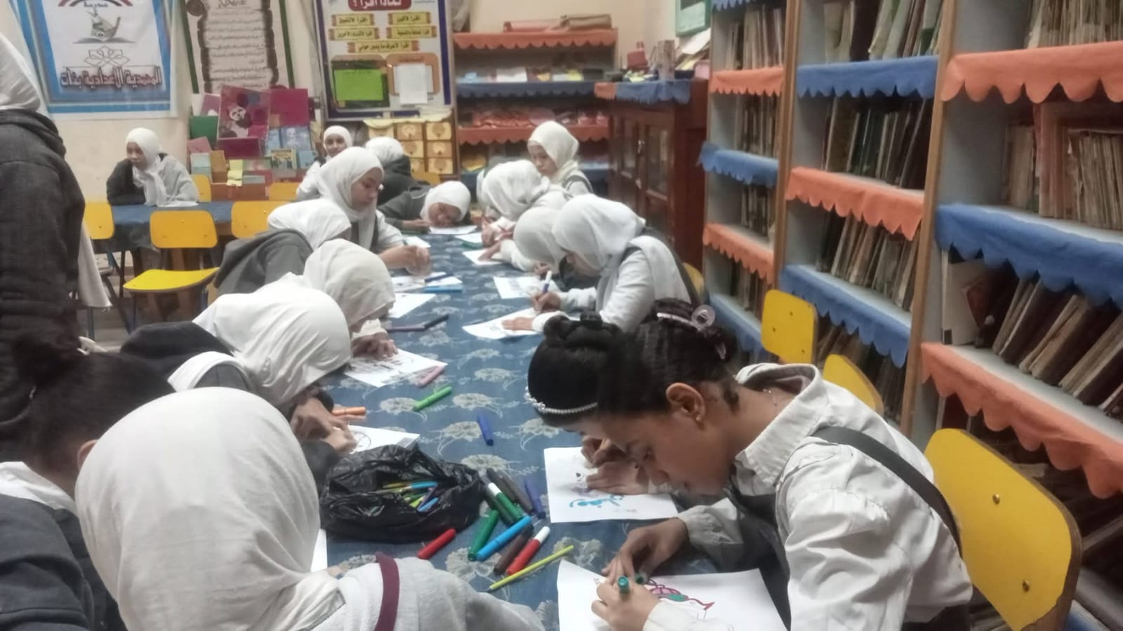 وعلى الجانب الفني، نظمت ورشة رسم وتلوين بإشراف سناء قناوي، عبّرت خلالها الطالبات عن مظاهر استقبال رمضان من خلال رسومات وأعمال فنية عكست أجواء الفرح والاستعداد للشهر الكريم.