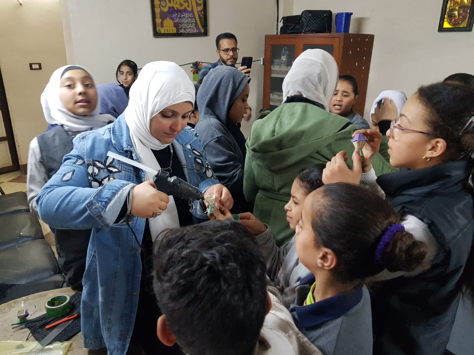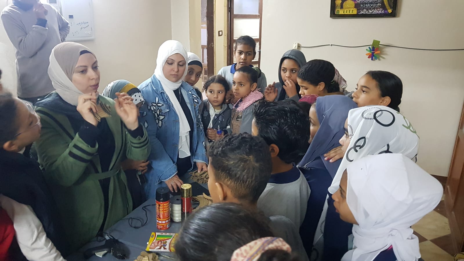 وفي إطار دعم وتنمية المهارات الحرفية، أُقيمت ورشة أشغال يدوية لتعليم الفتيات كيفية استخدام خامات بسيطة ومتوفرة لتنفيذ نماذج مفارش من النول، نفذتها ثناء سيد ومنى خليفة.
